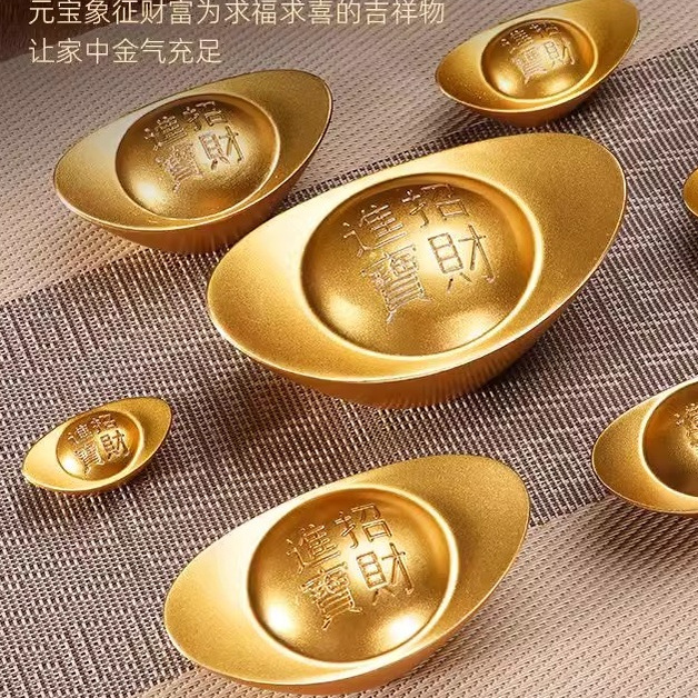 黄铜实心沙金元宝摆件道具财神客厅聚宝盆店铺装饰品开业乔迁礼品