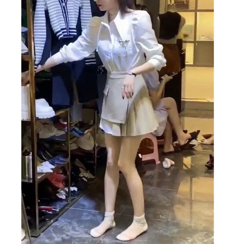 9751大爱美依缘2024秋季新款韩版白色衬衫上衣女不规则裙子两件套