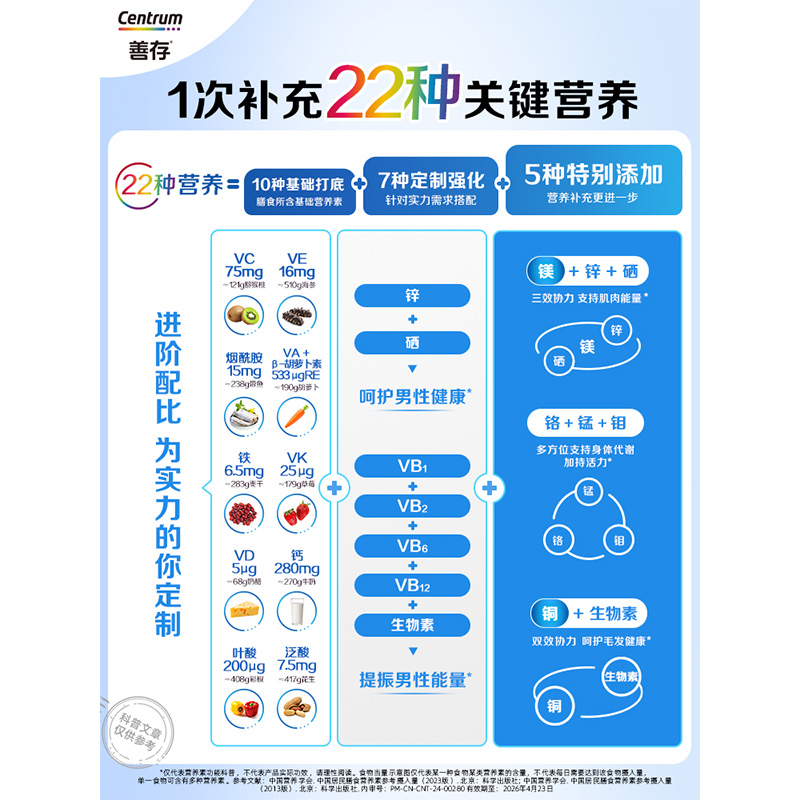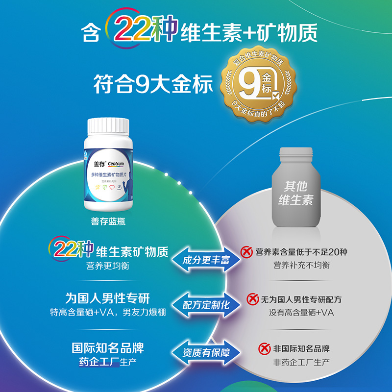 善存男士成人复合维生素vcb维矿叶酸锌硒1粒补充22种营养官方正品
