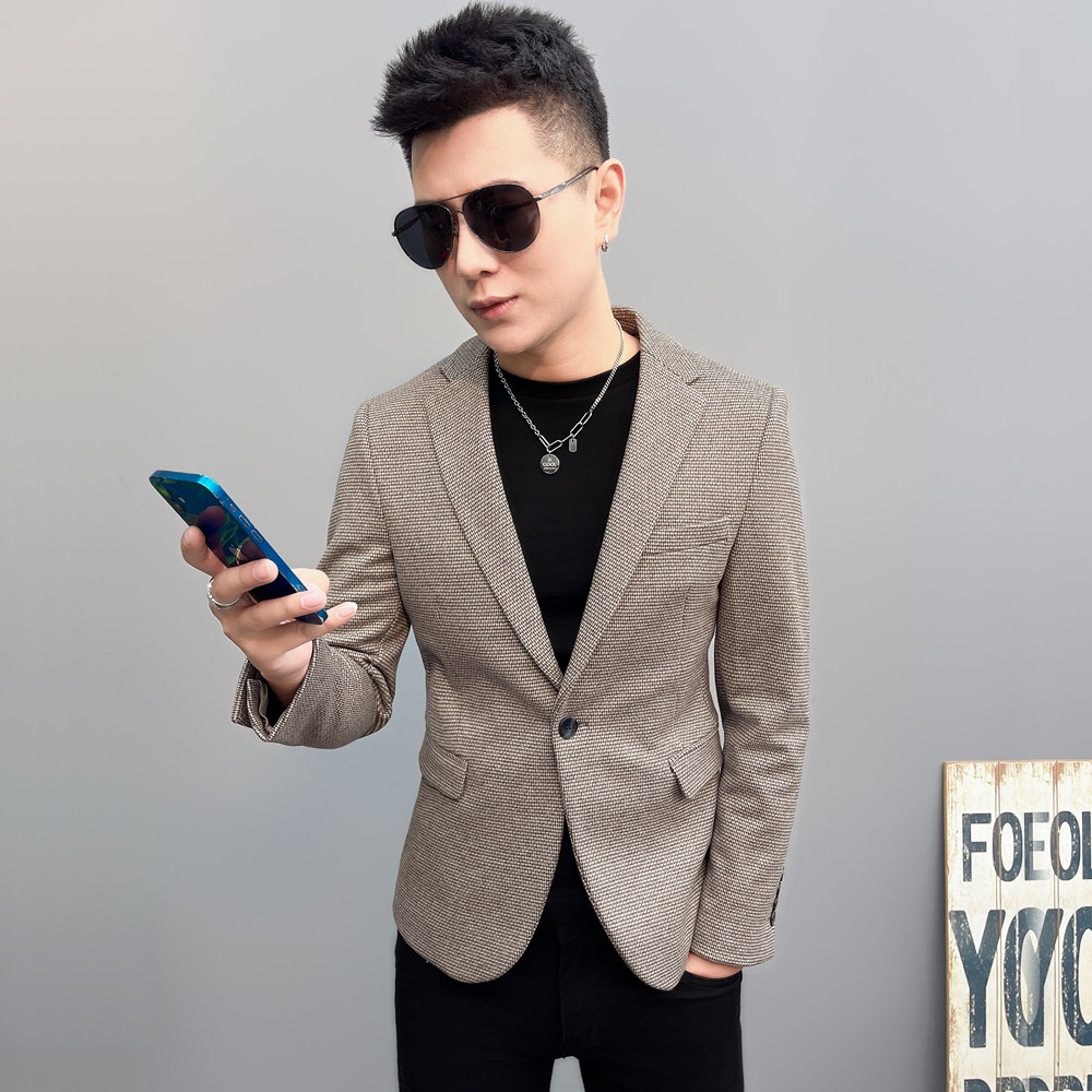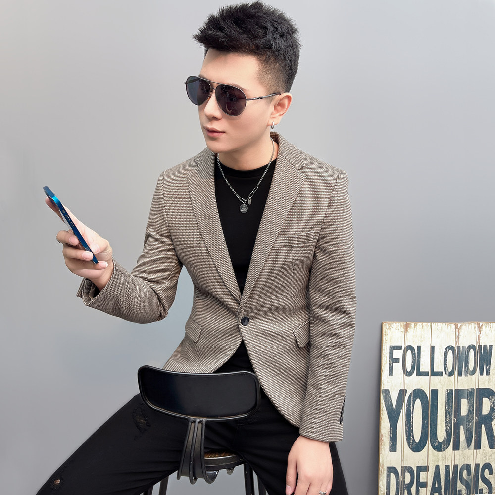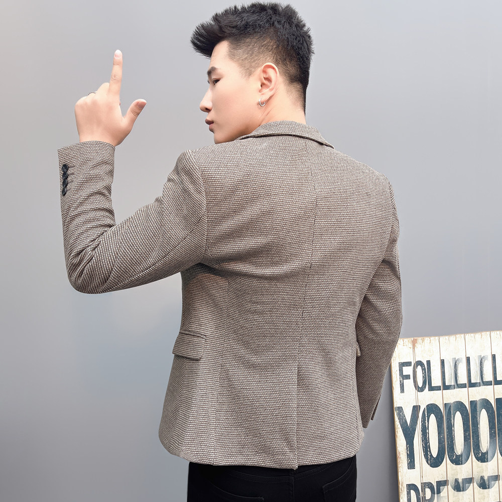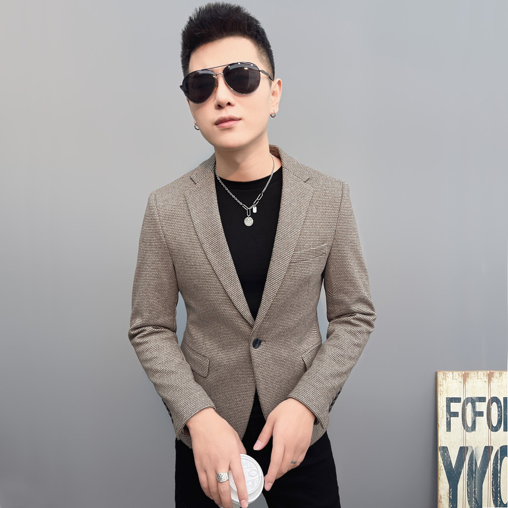 2025秋季格子男士小西装韩版修身休闲西服外套青年帅气单件上衣潮