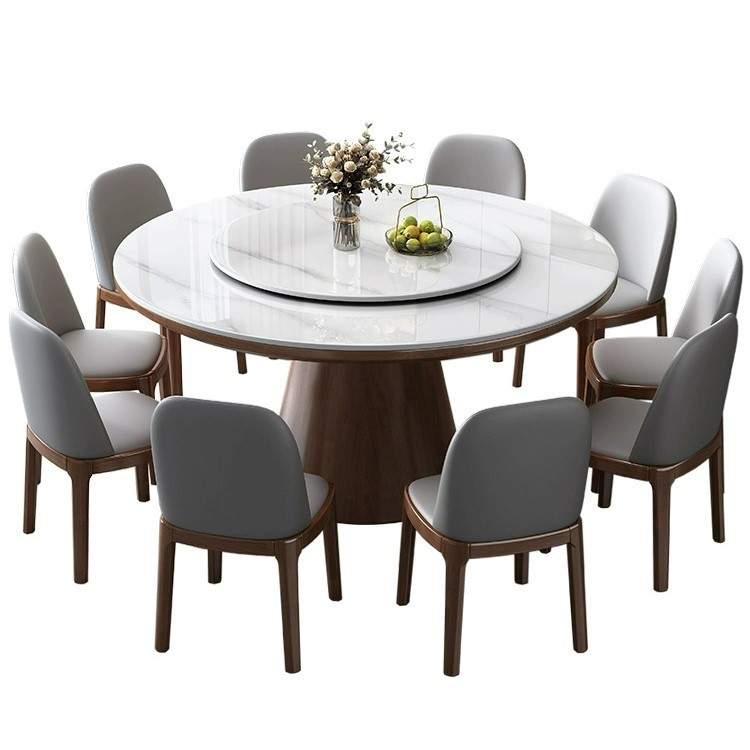 现代简约加厚圆形实木餐桌椅组合家用酒店轻奢带转盘桌子岩板圆桌