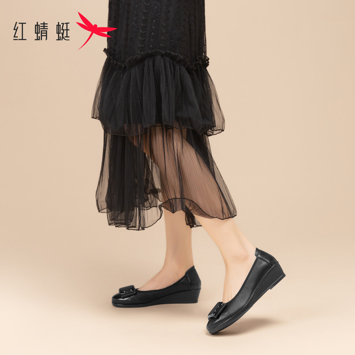 红蜻蜓妈妈鞋坡跟女单鞋春秋款