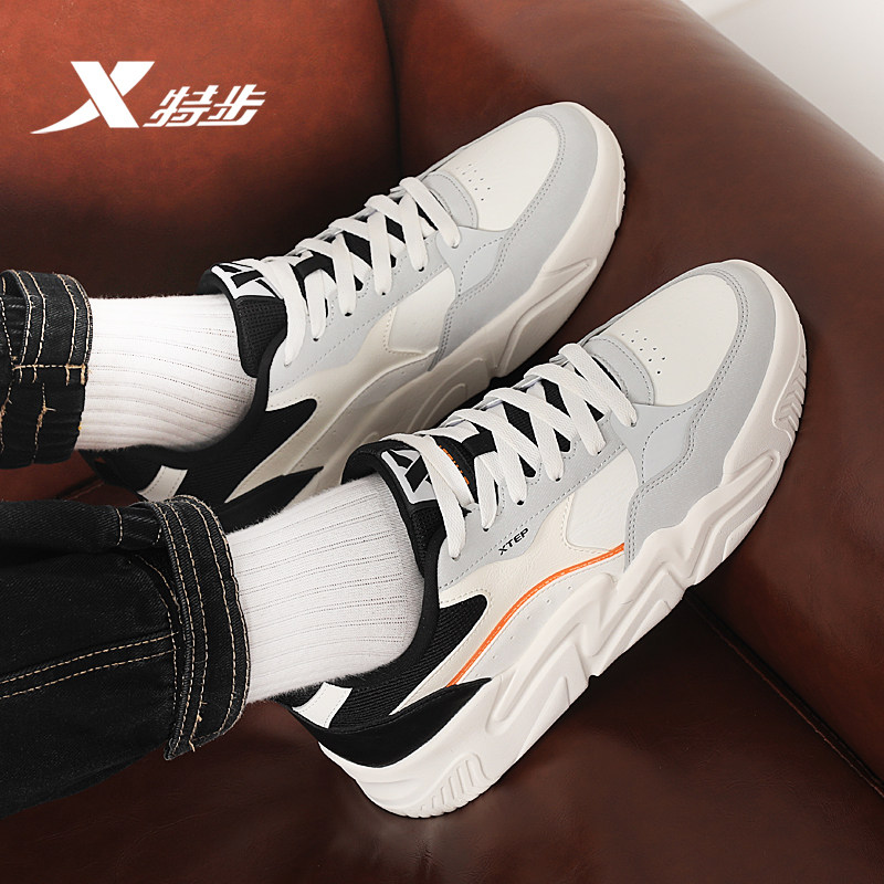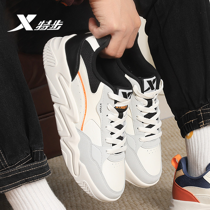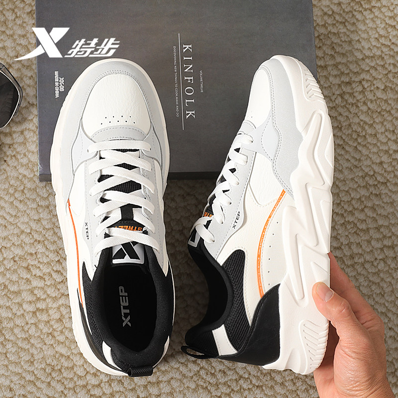 特步男鞋2026春季新款皮面防水休闲板鞋学生复古革面轻便运动鞋男