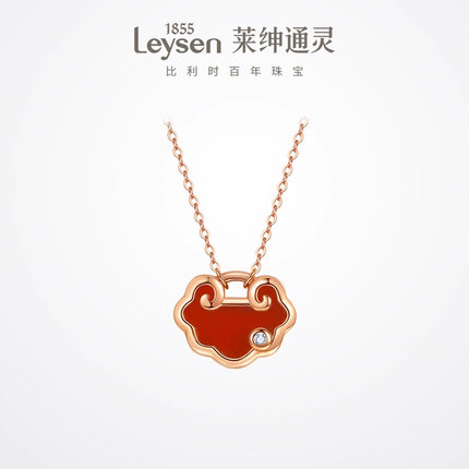 莱绅通灵珠宝18K金百搭红玛瑙钻石项链 祥云如意