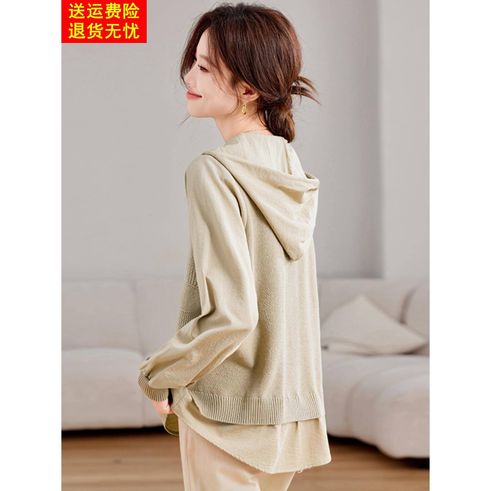 连帽假两件针织卫衣女长袖拼接衬衫2025春秋新款时尚高级感衬衣薄