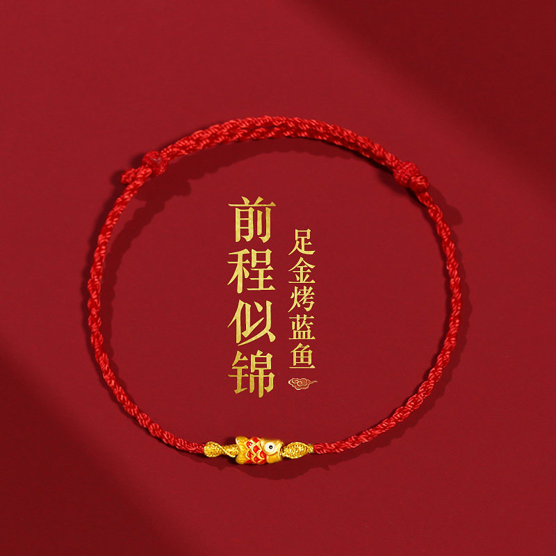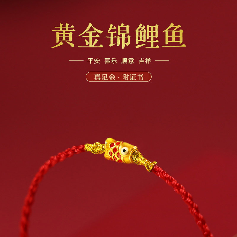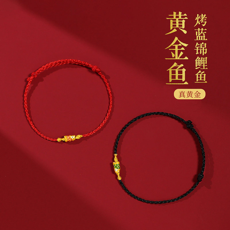 锦鲤鱼黄金手绳编织本命年红绳手链男女真足金蛇年上岸情侣礼物