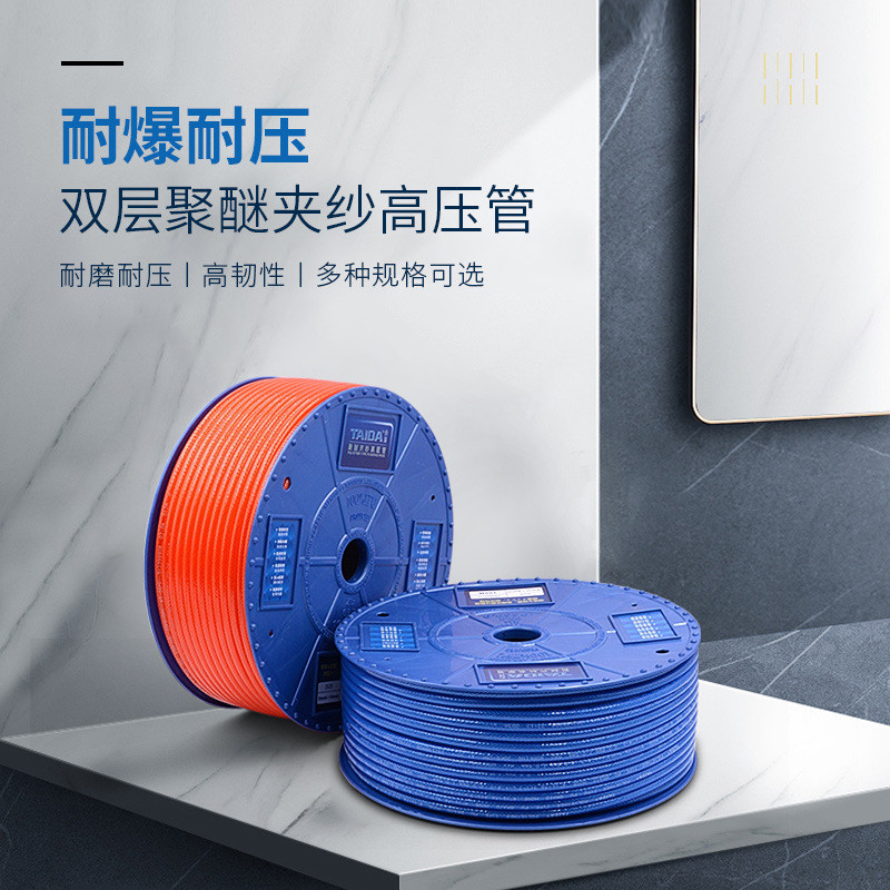 夹纱PU气管耐压16公斤 高压气管三层包纱 蓝色气动软管空压气源管