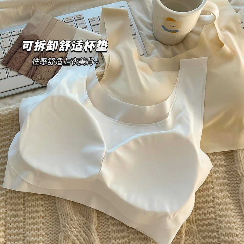 无痕防震内衣运动型女学生运动冰丝背心式透气文胸薄款固定聚拢
