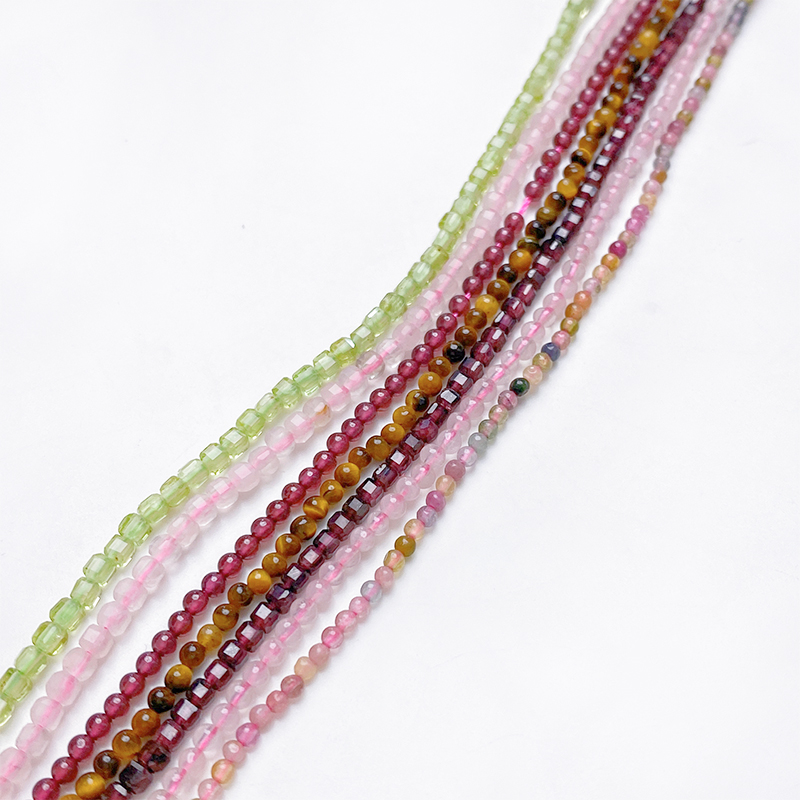 2mm天然石榴石粉晶碧玺散珠小珠子手工diy手链项链耳饰品材料配件