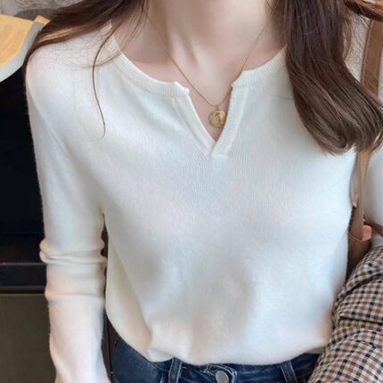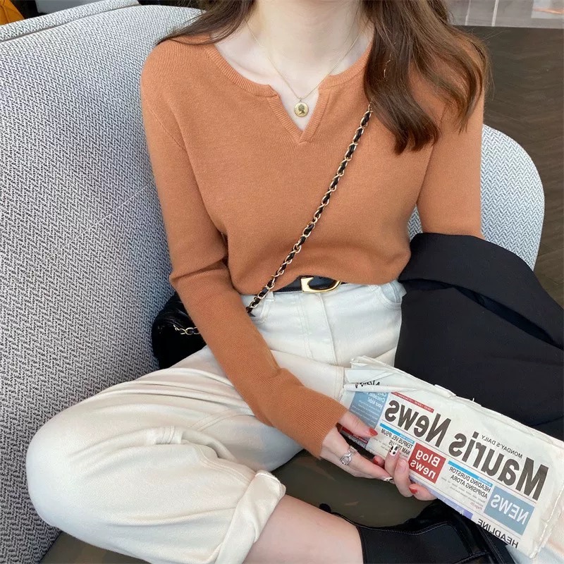 秋冬小V领辣妈外出哺乳长袖针织打底衫修身显瘦产后喂奶内搭上衣
