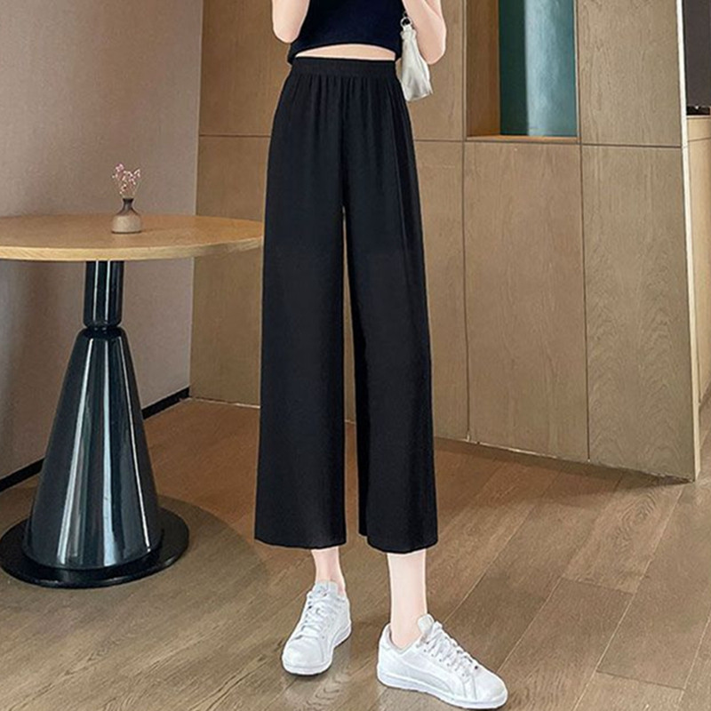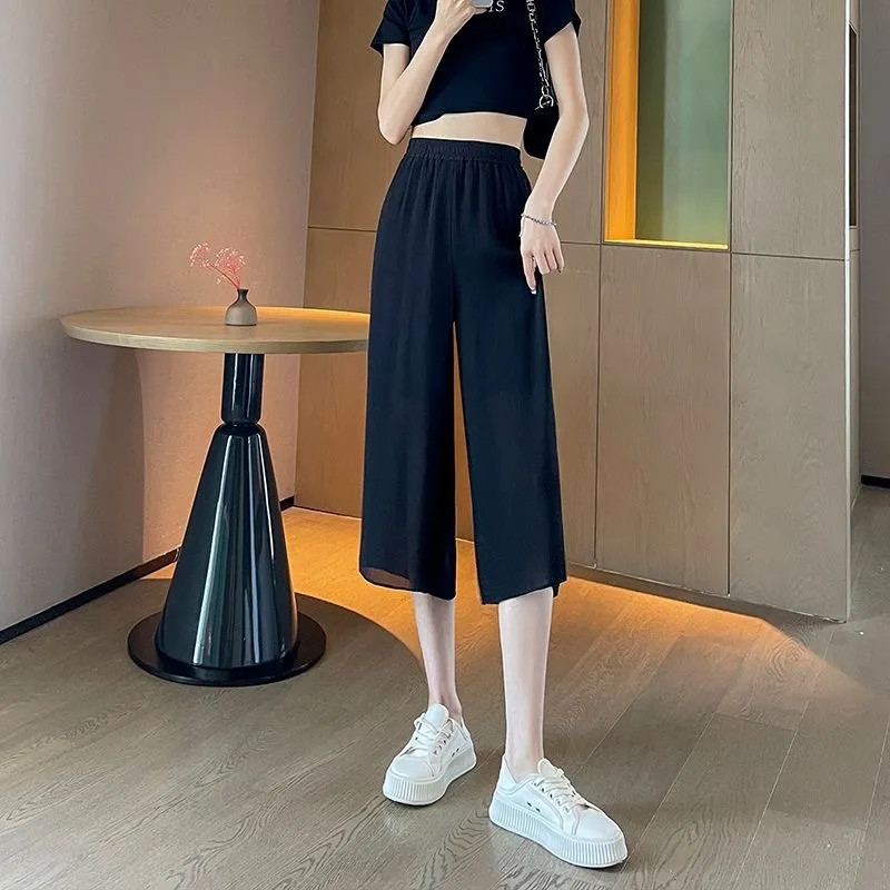 雪纺阔腿裤女夏新款薄款宽松显瘦小个子七分直筒高腰九分休闲裤子