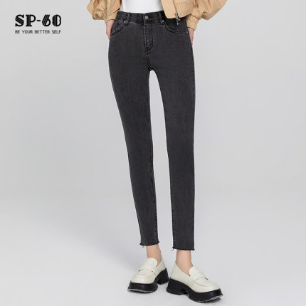 sp68牛仔裤灰色小脚经典加绒保暖新秋冬女士直筒裤显瘦弹力长裤