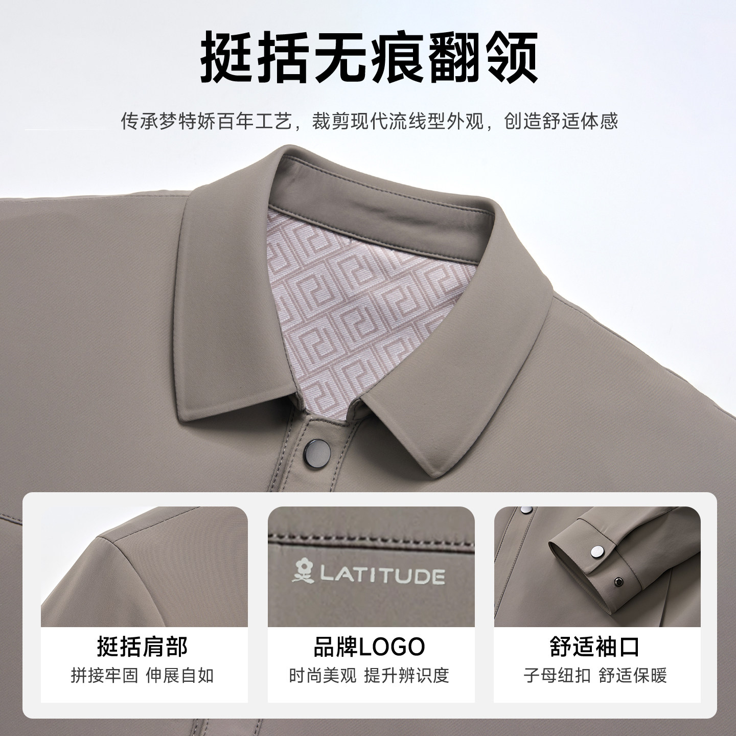 春上新X梦特娇男士翻领夹克衫抗皱牛奶丝顺滑面料春季外套按扣款Z