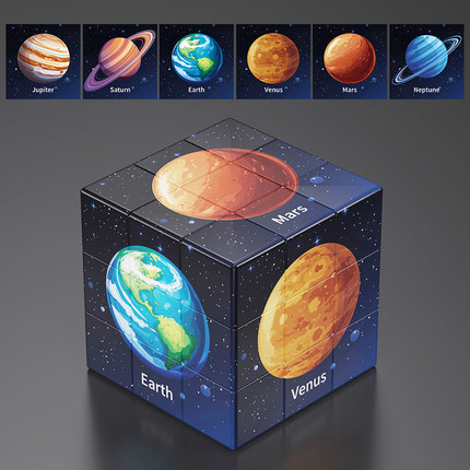 行星银河唯美科学创意魔方图案星球航天三阶益智礼物儿童学生玩具