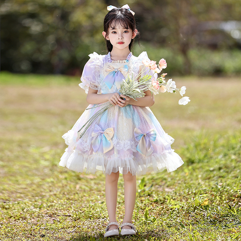 女童洛丽塔公主裙小女孩夏季裙子2025新款洋气儿童彩虹网纱连衣裙