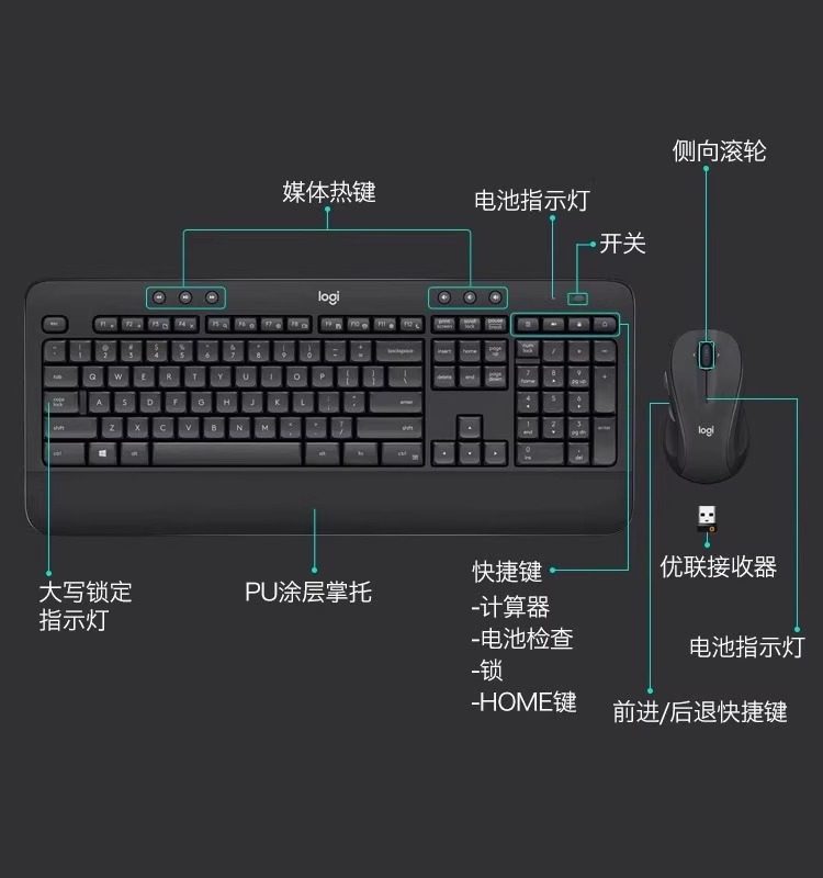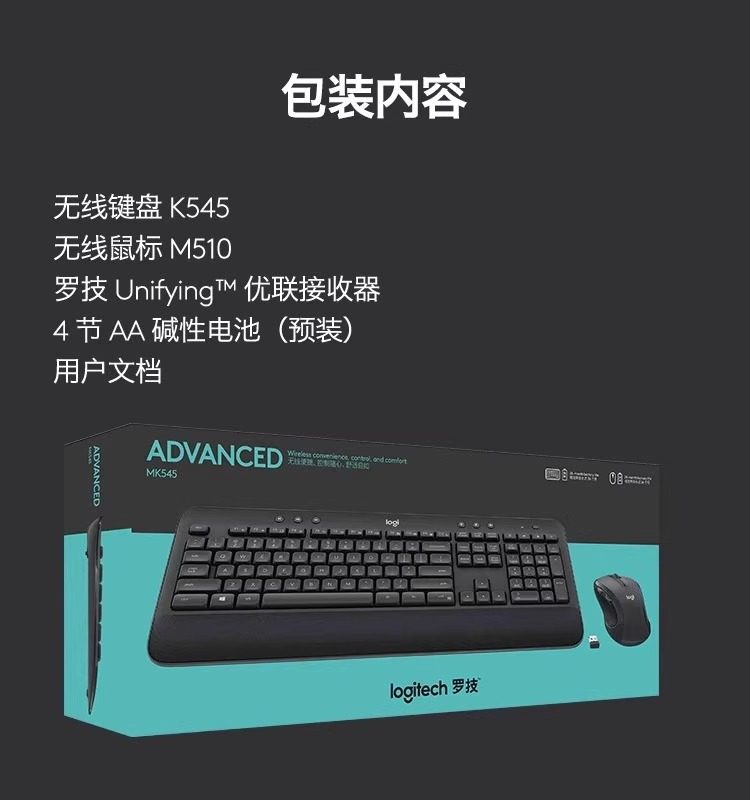 罗技MK545商用无线键鼠套装家用办公游戏电脑笔记本电竞专用MK540