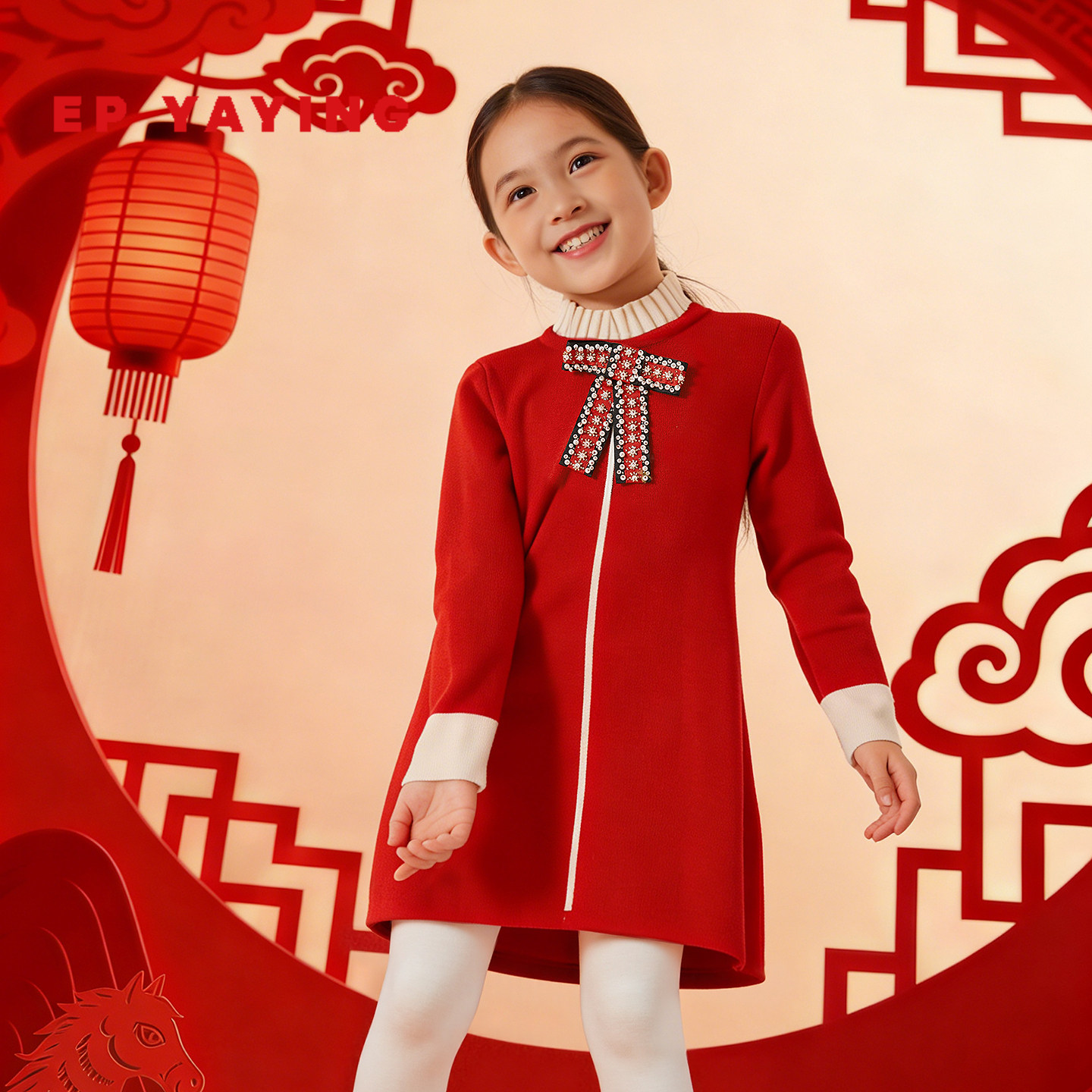 [爆款补单]EP雅莹童装秋冬新款小香风洋气羊毛红色连衣裙公主裙