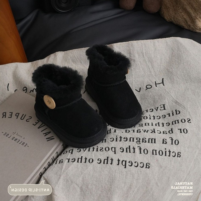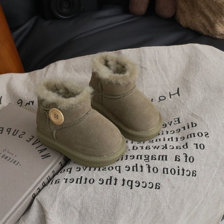 女童雪地靴冬季新款儿童加绒棉鞋宝宝棉靴一粒扣男童短靴皮毛一体