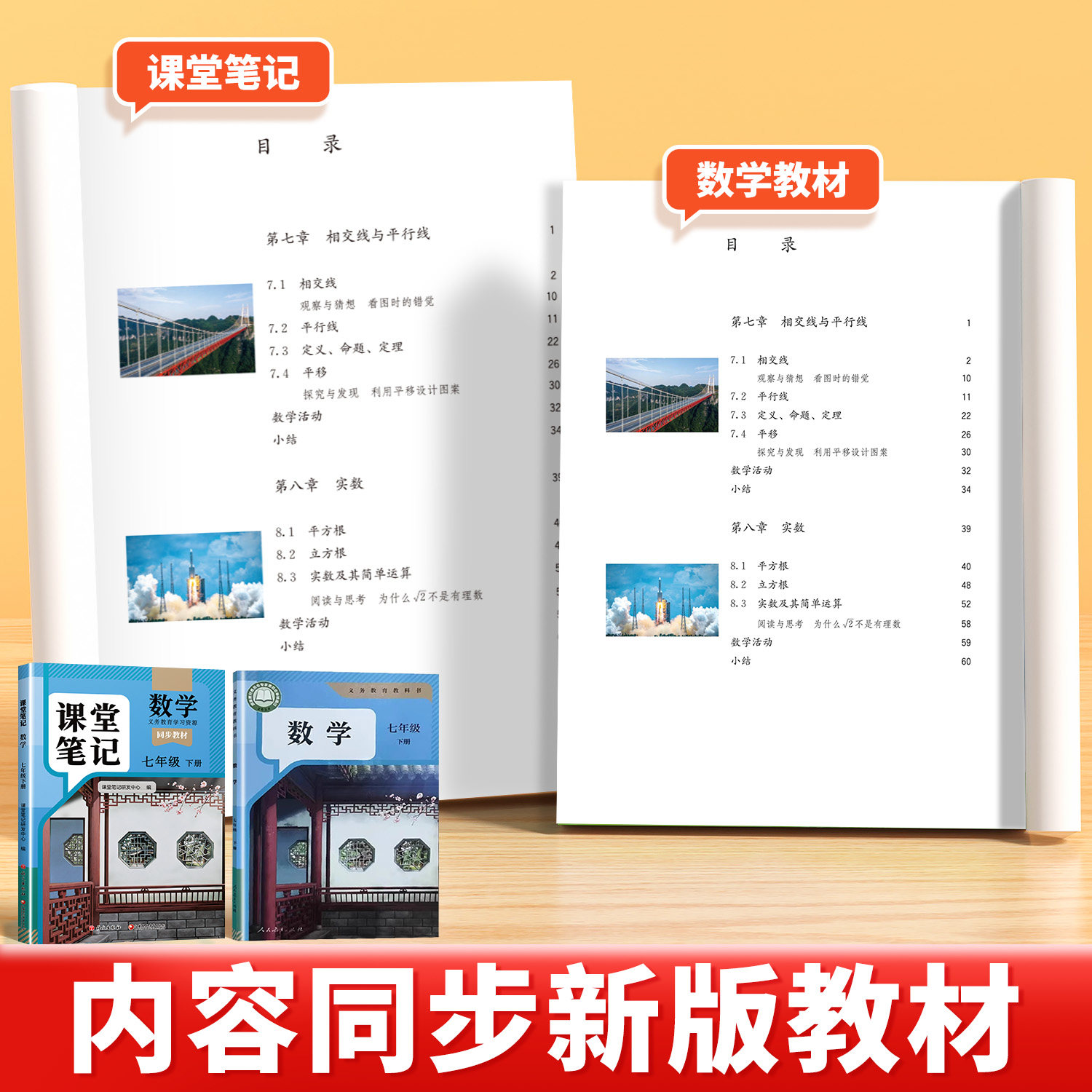 斗半匠2026年适用数学课堂笔记七年级下册上册人教版初一同步课本教材书7七下学期初中生教材全解预习复习中学教辅资料书学霸笔记