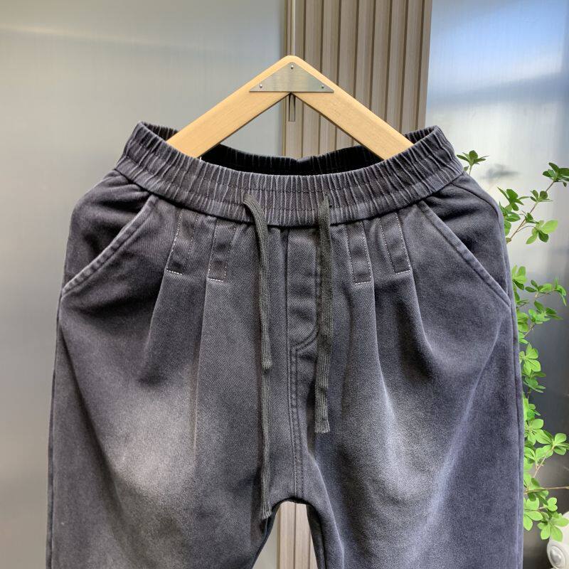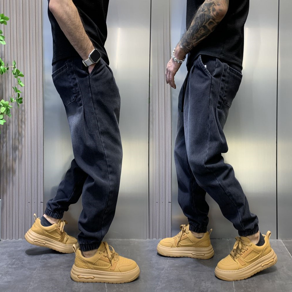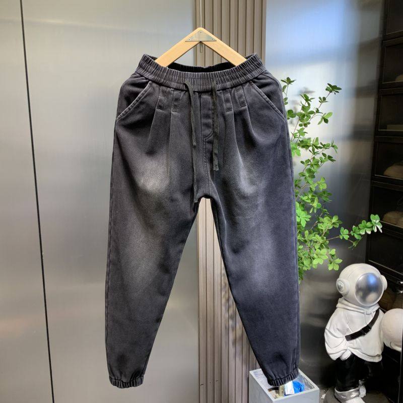 牛仔裤男士秋季新款韩版束脚哈伦裤潮流韩版宽松褶皱弹力休闲裤子