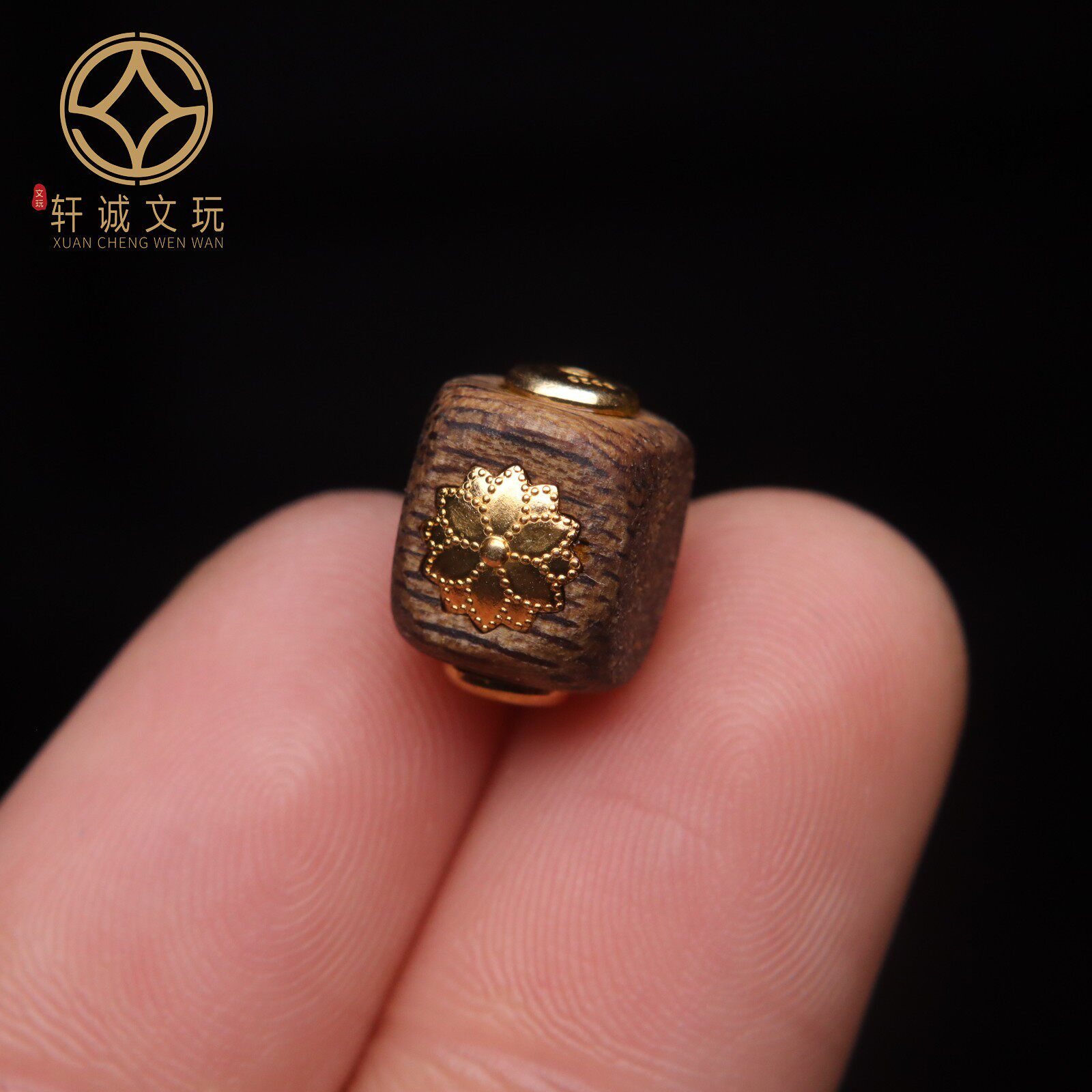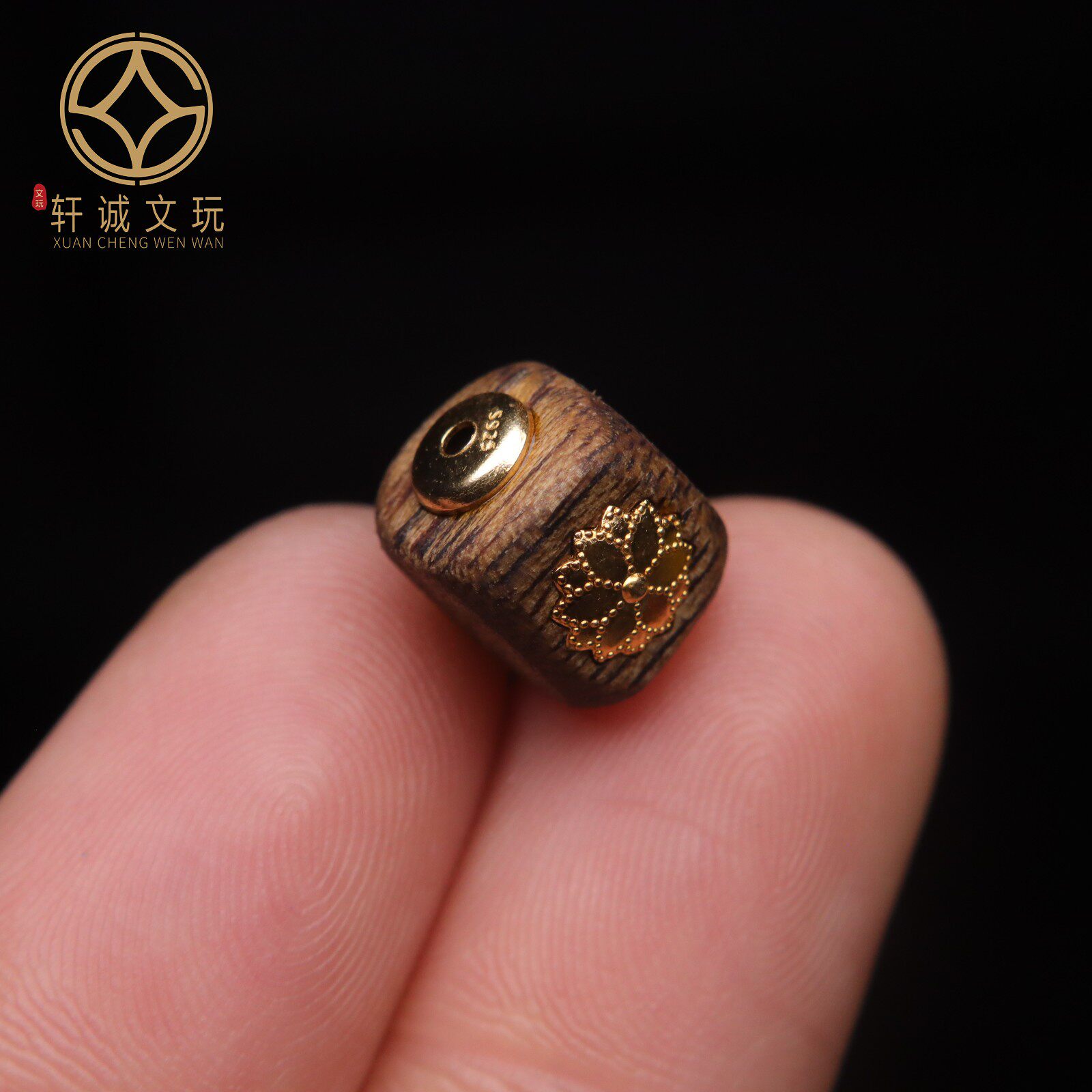 原创S925银镀金六瓣莲花护身沉香桶珠手串手链diy文玩配珠配饰