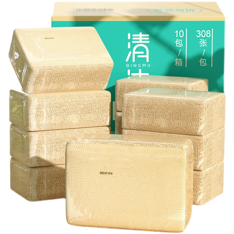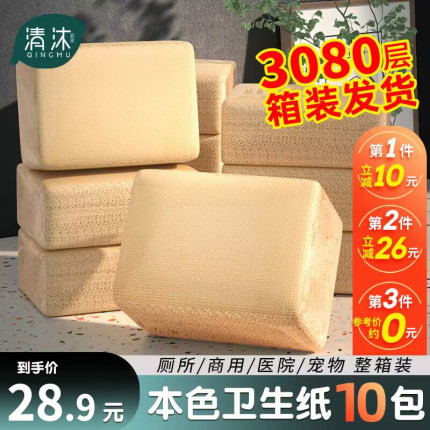 清沐卫生纸本色厕纸大包压花平板整箱厕所无标家用家庭实惠装草纸