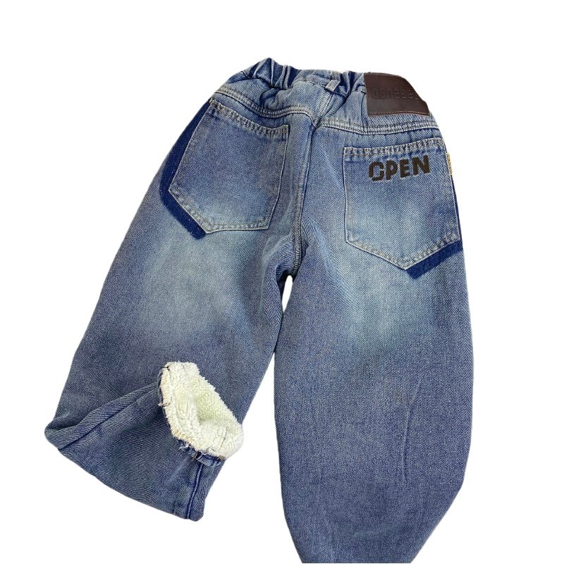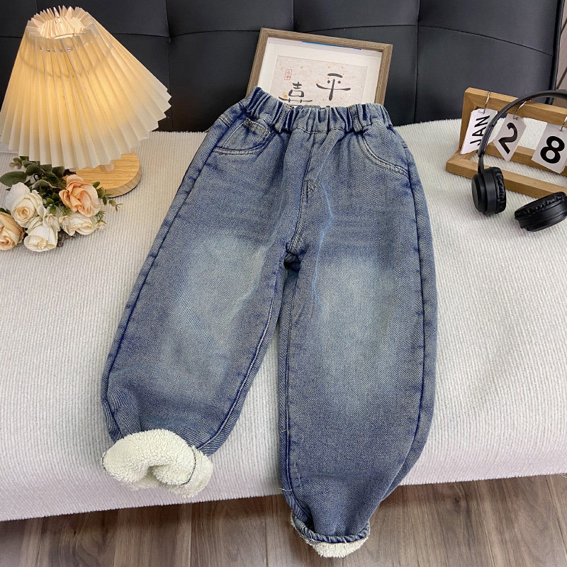 海洋家特价童装 男女童秋冬季新款长裤儿童加绒牛仔裤中大童裤子