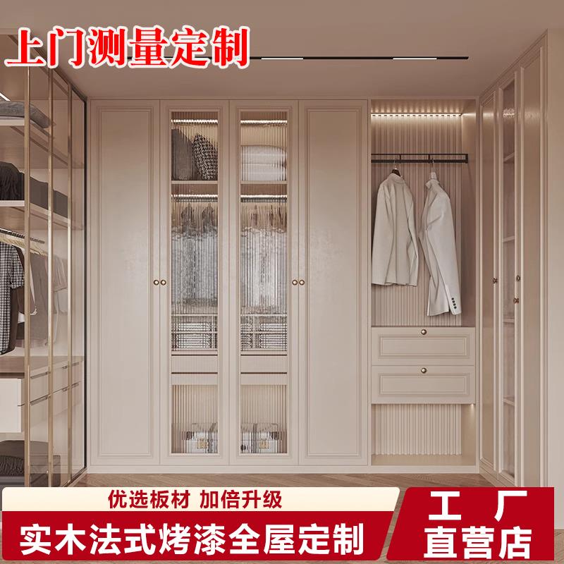 吾匠全屋定制衣柜实木衣帽间组合柜一体卧室衣橱奶油法式整体家具