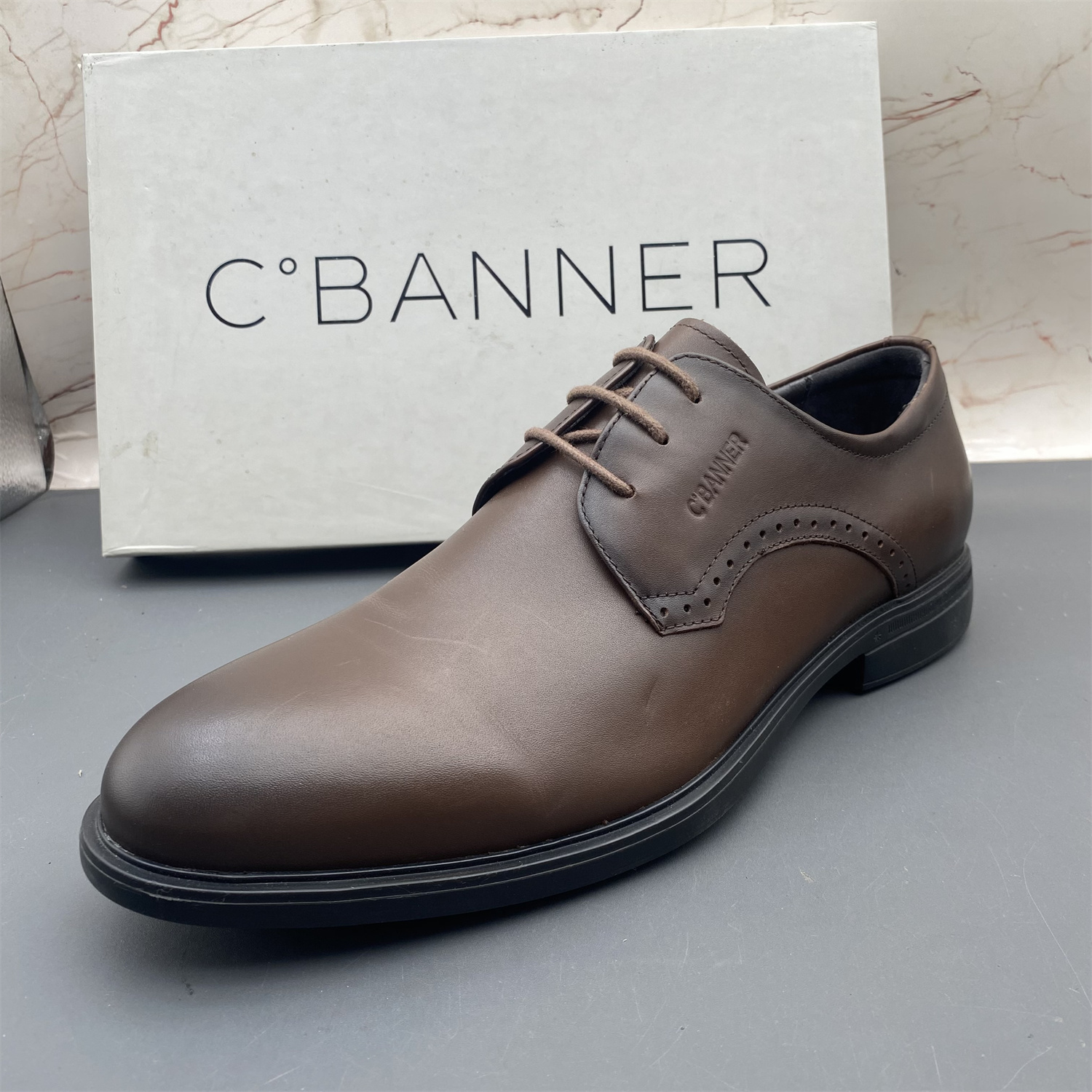 C.BANNER千百度撤柜断码牛皮男鞋系带圆头防滑雕花时尚正装皮鞋男
