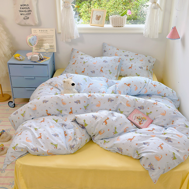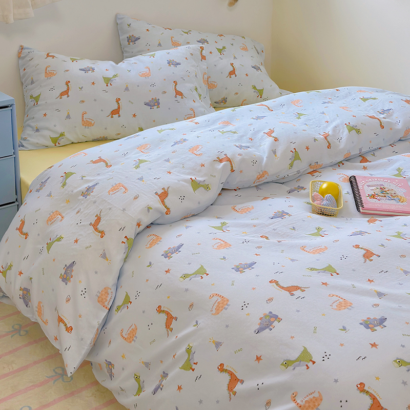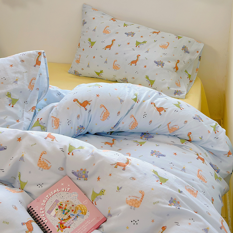 可爱恐龙 定做全棉双层纱三/四件套儿童房床品套件床单被套幼儿园