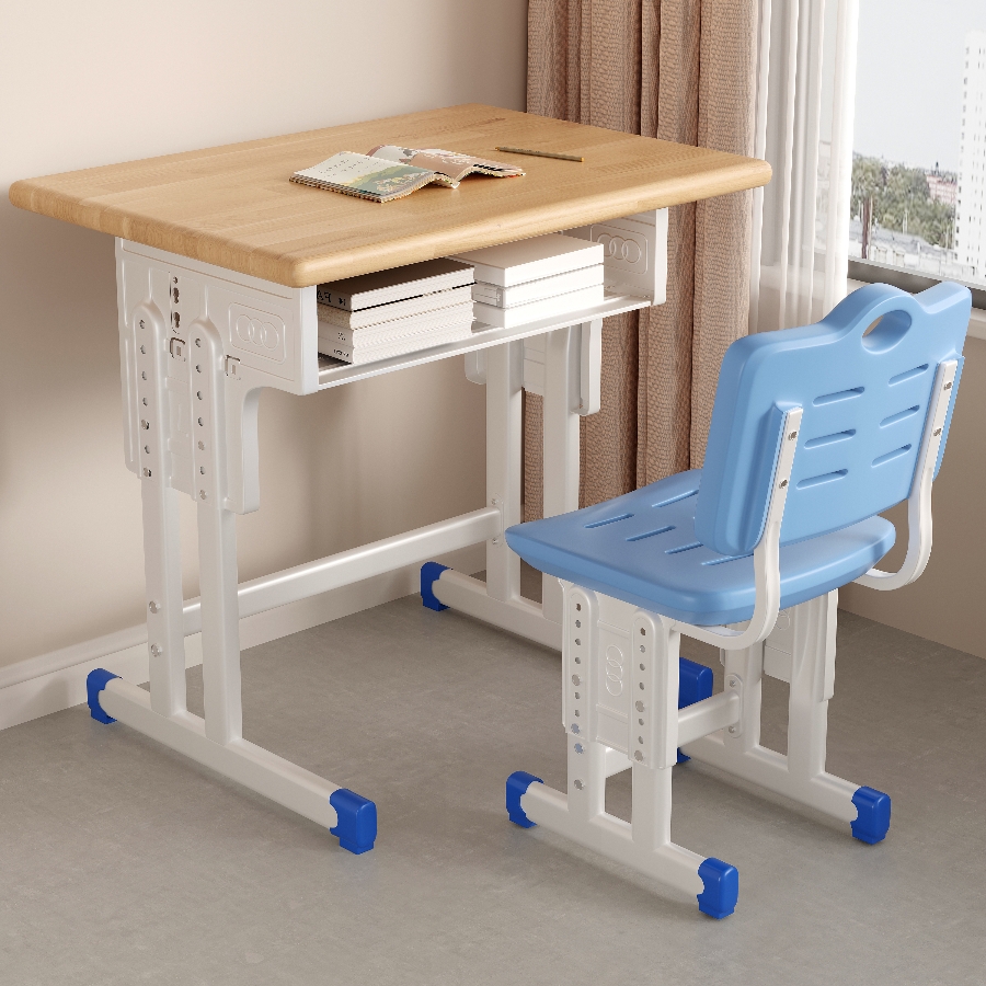 单人中小学生实木书桌学校升降课桌椅家用儿童学习桌培训班小饭桌
