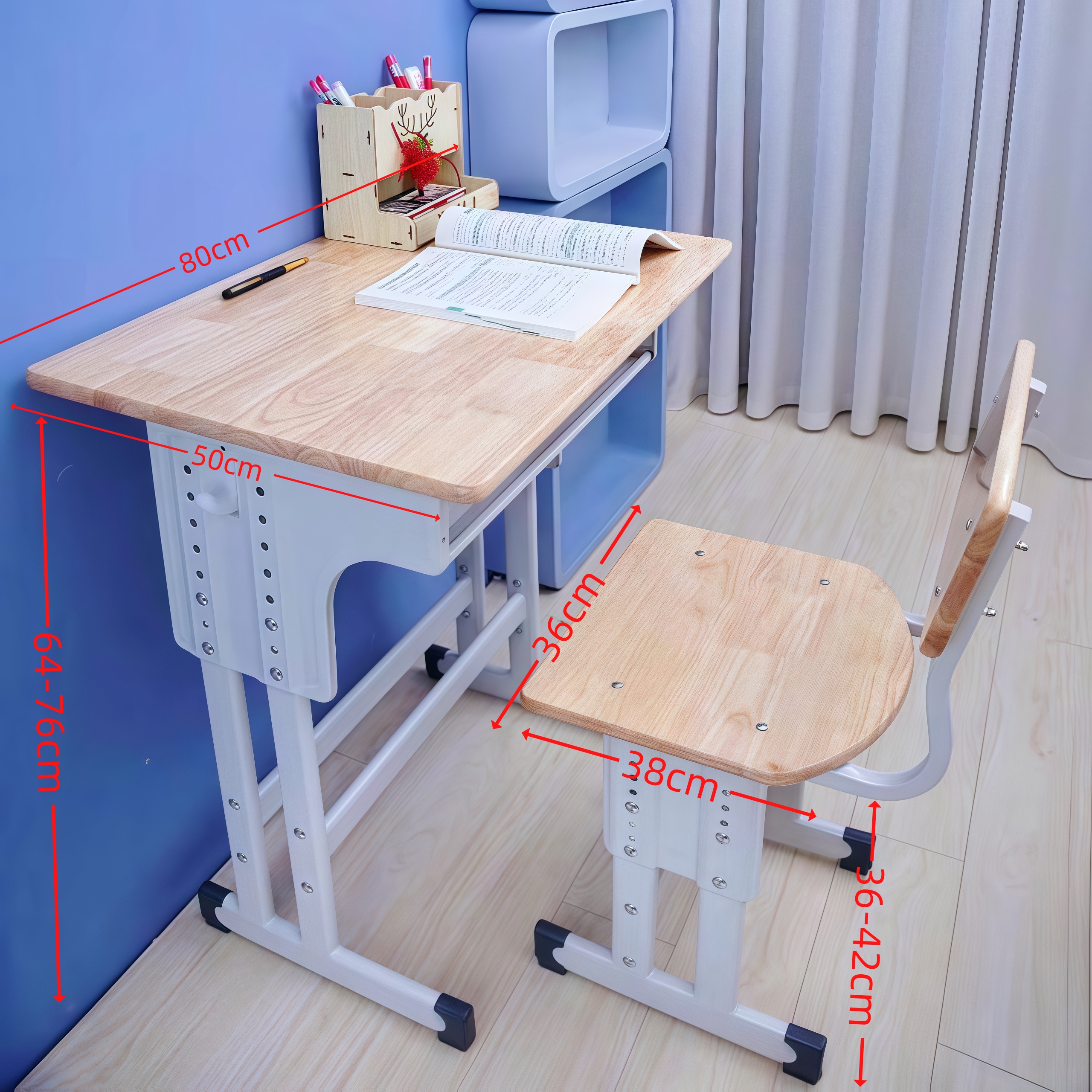 祥岗山实木升降儿童学习桌椅学校