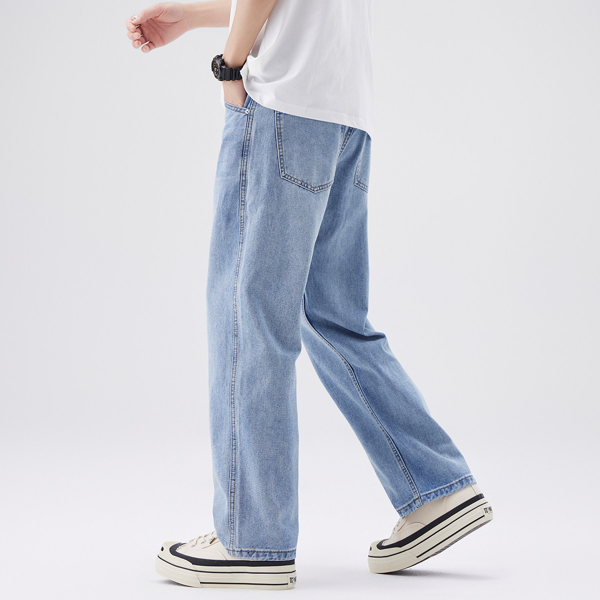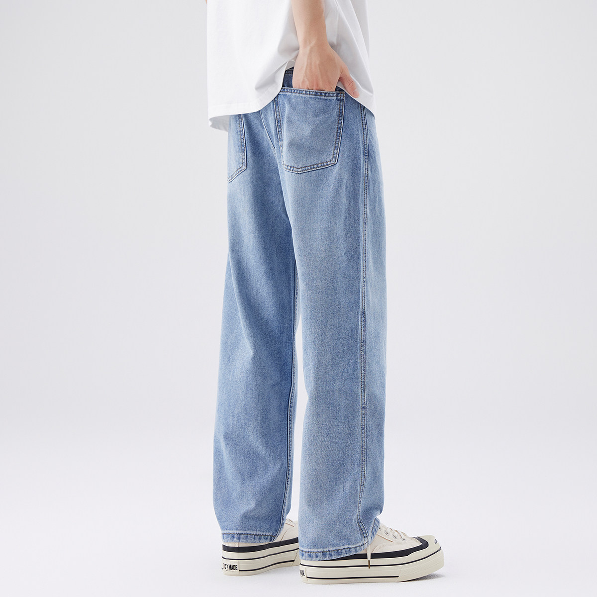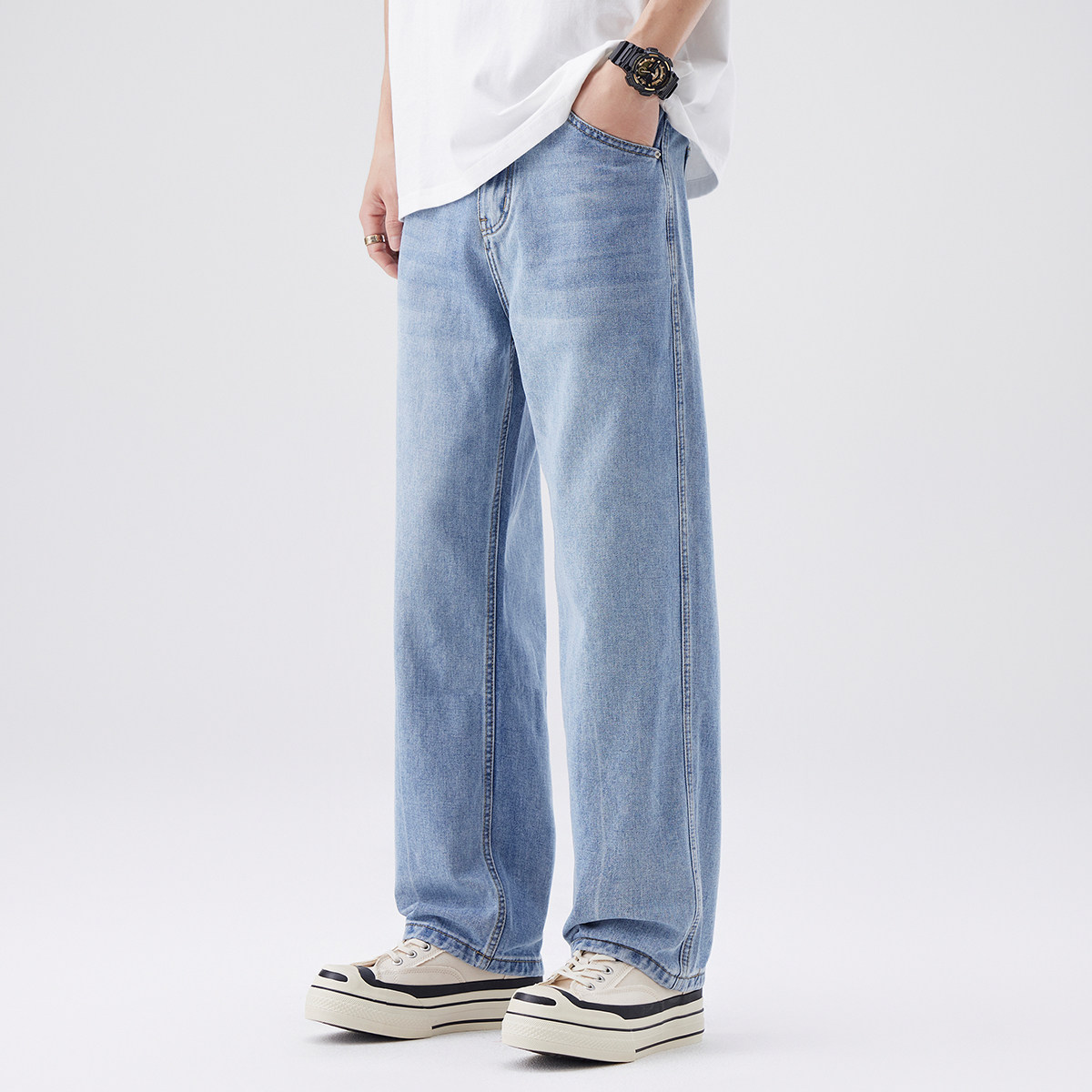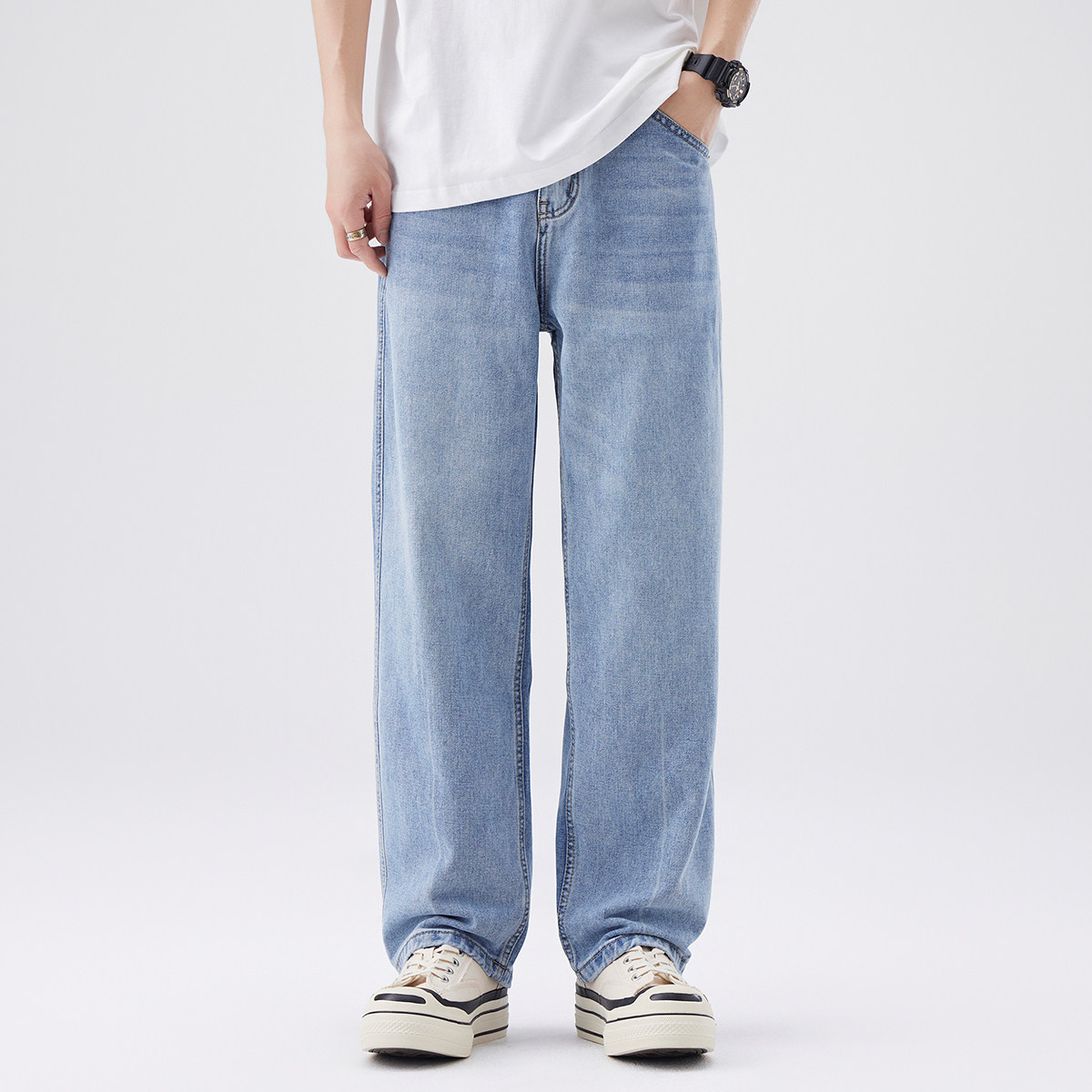 Aurorass水洗浅色牛仔裤男宽松直筒夏季薄款美式复古阔腿休闲长裤