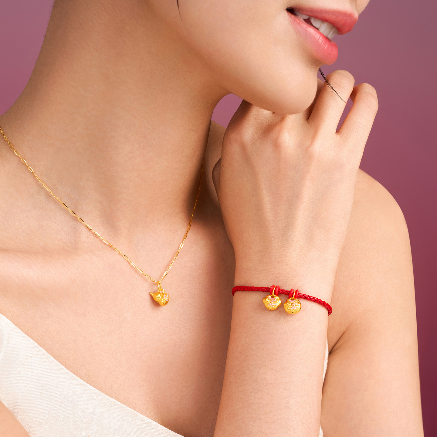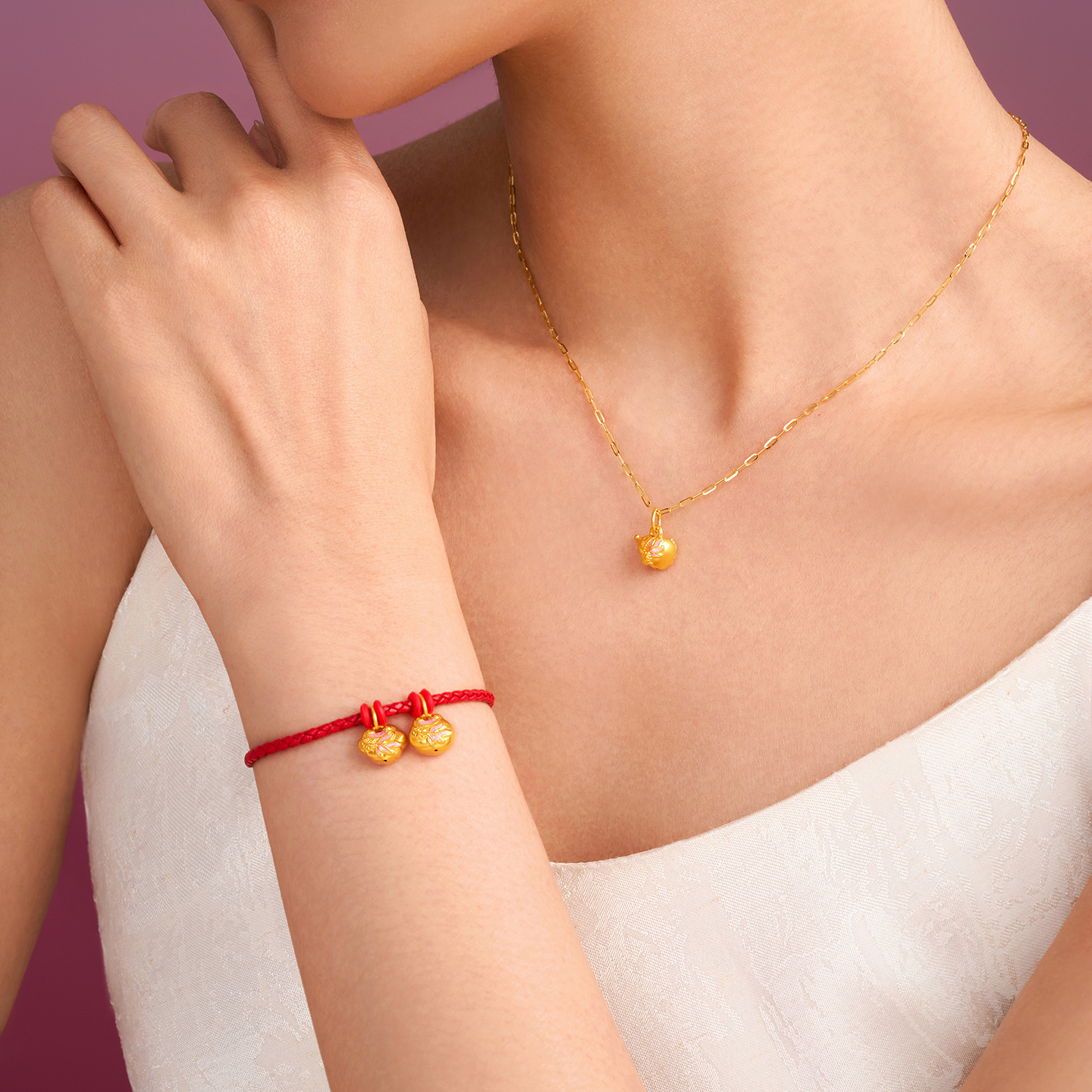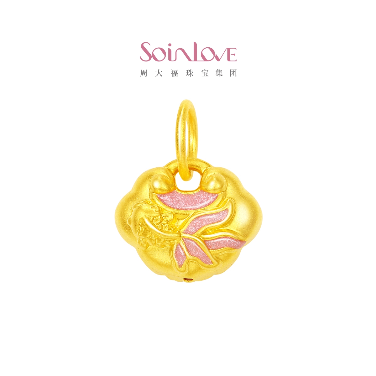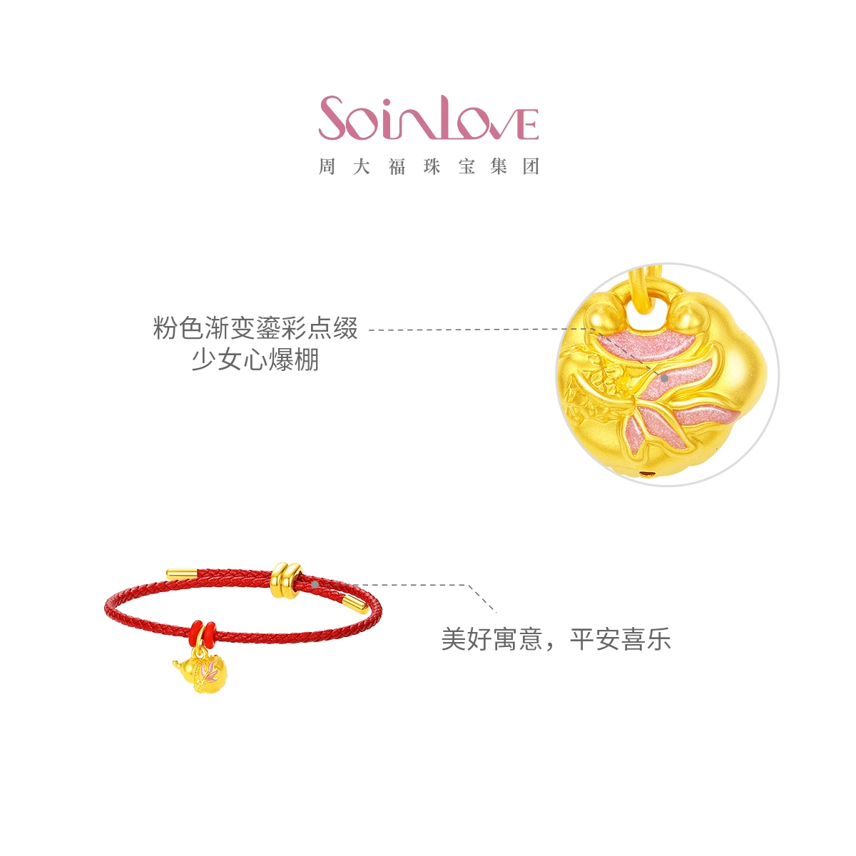 周大福SOINLOVE 锦鲤如意锁包葫芦胖福黄金吊坠配红绳圣诞礼物