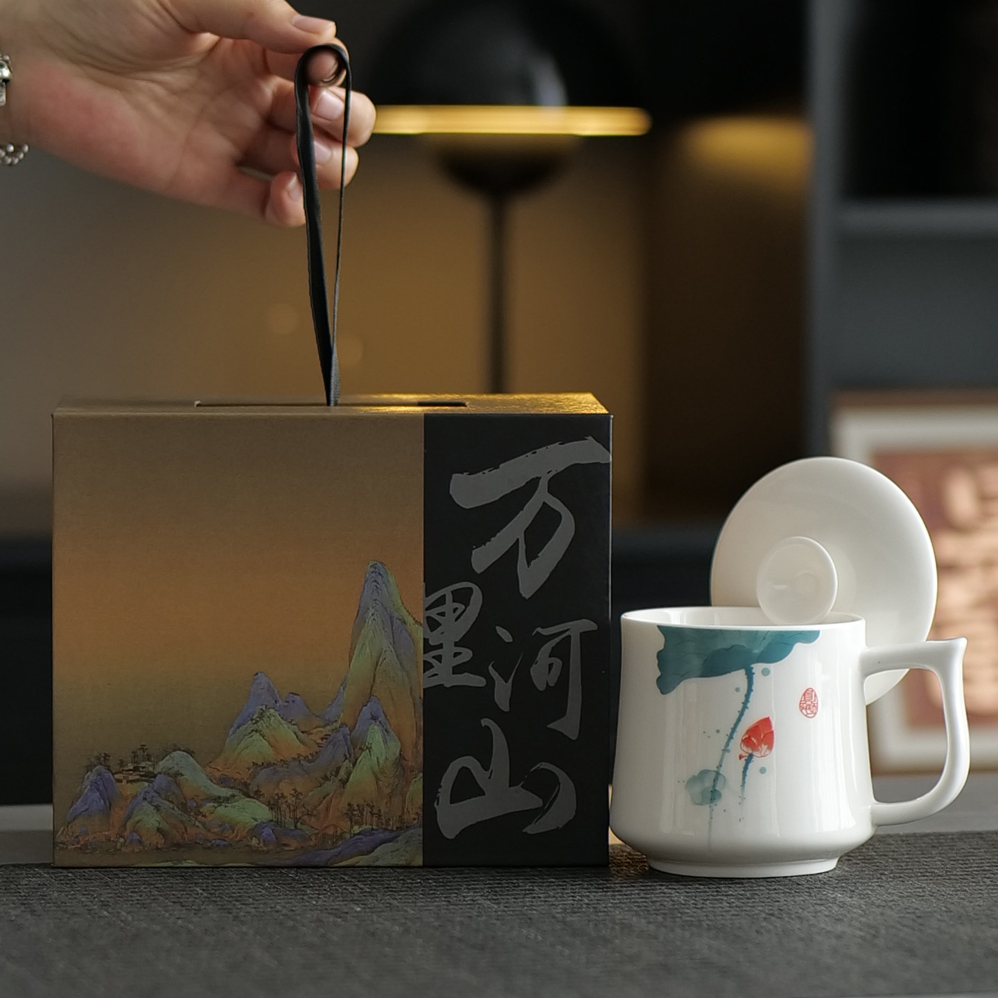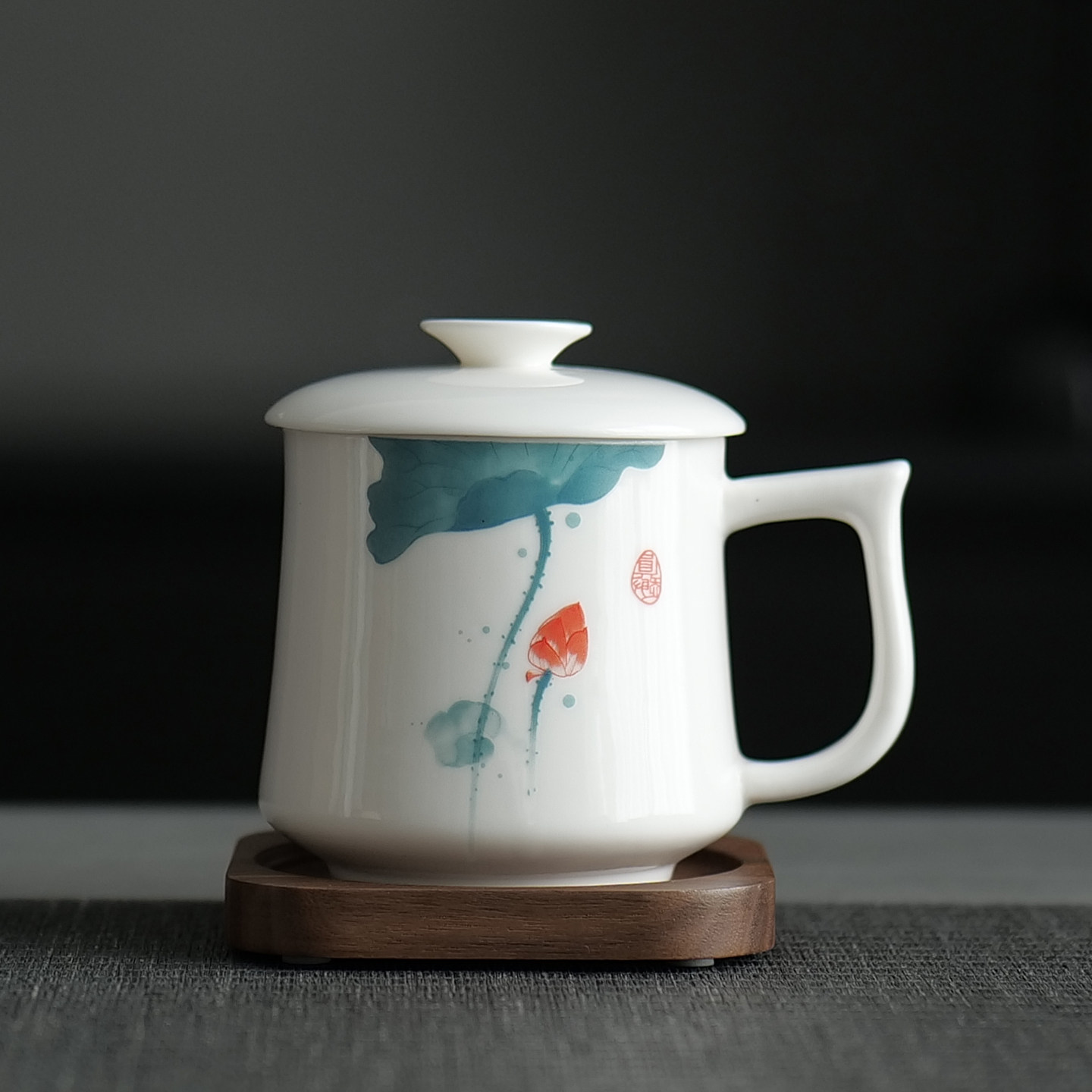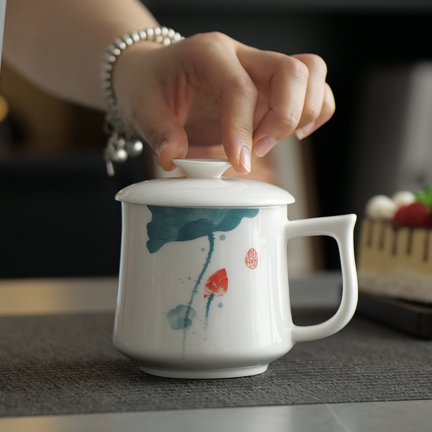羊脂玉瓷会议茶杯个人德化白瓷马克杯带盖家用水杯陶瓷办公杯礼品
