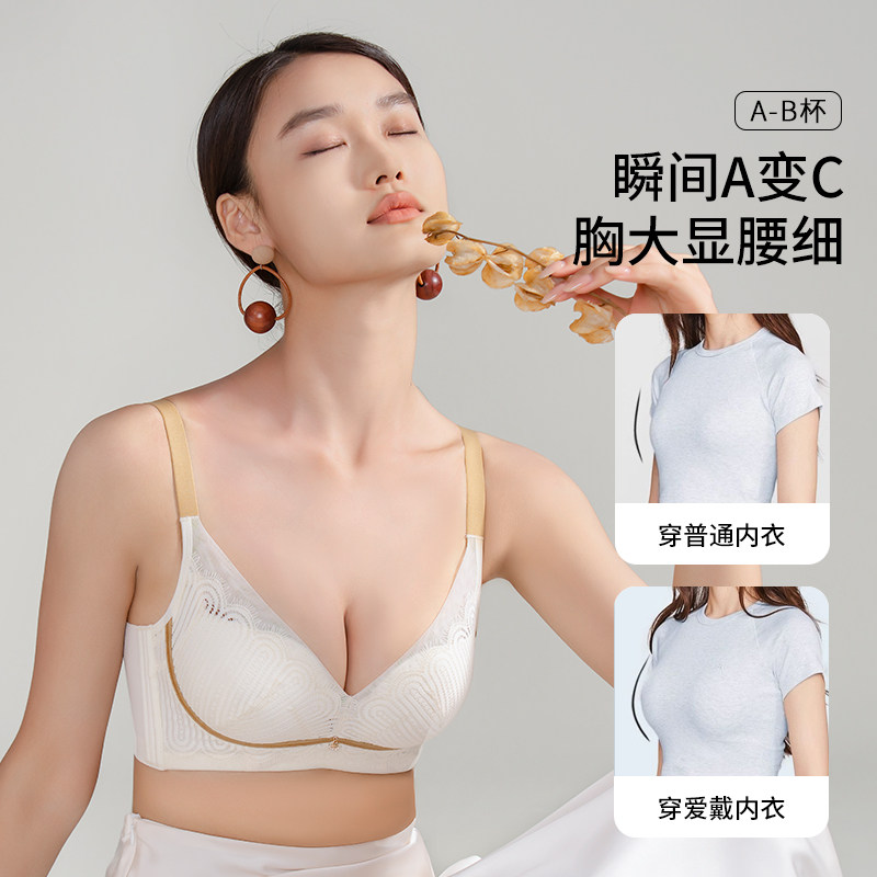 爱戴内衣女小胸聚拢桑蚕丝植物染无钢圈专柜正品显大上托胸罩文胸