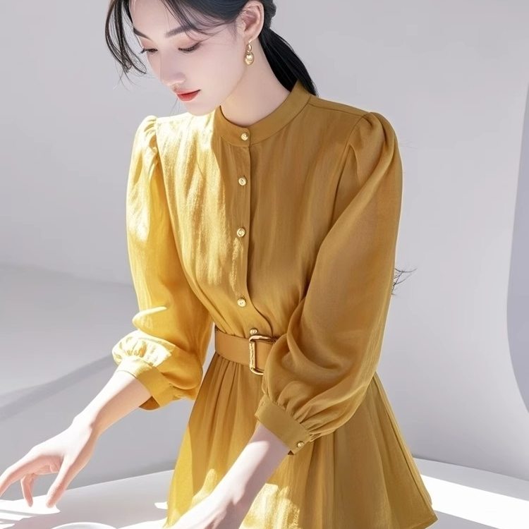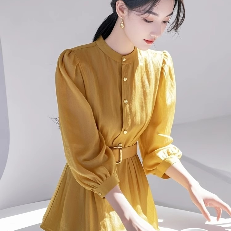 高级感轻奢收腰黄色衬衫女2025春季新款超好看洋气独特漂亮衬衣服