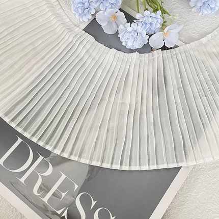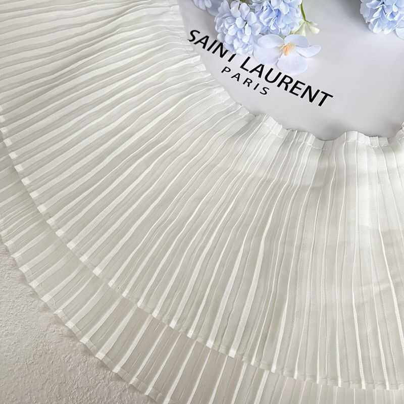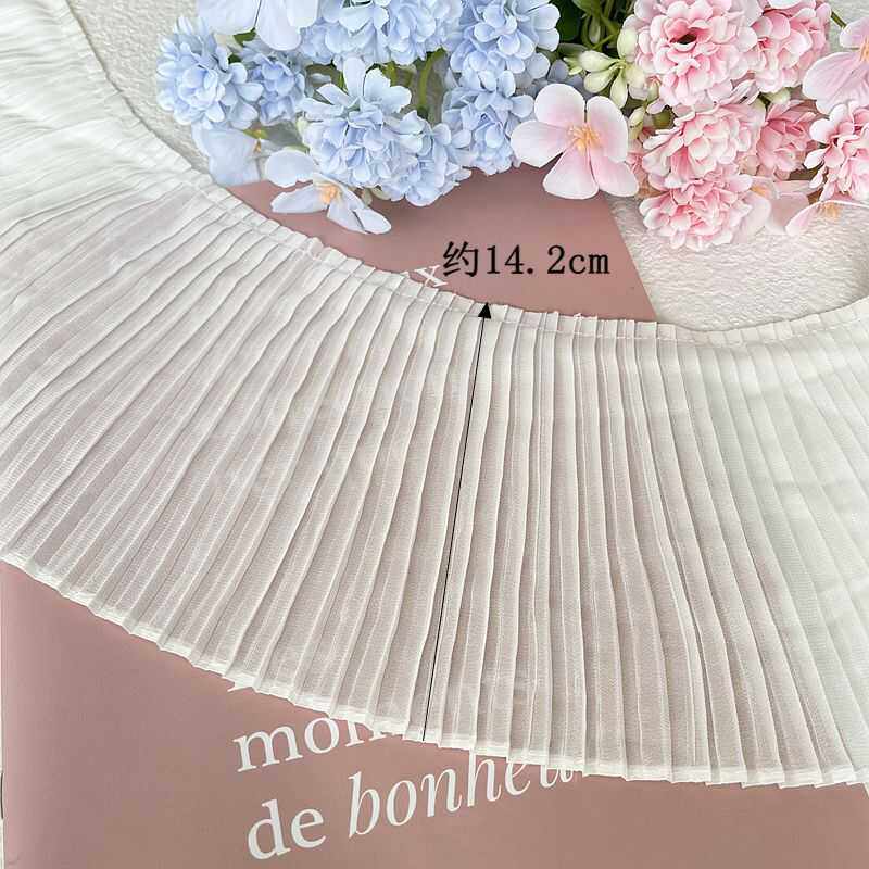 白色雪纺百褶风琴下摆压褶花边蕾丝边裙摆袖子领口装饰辅料