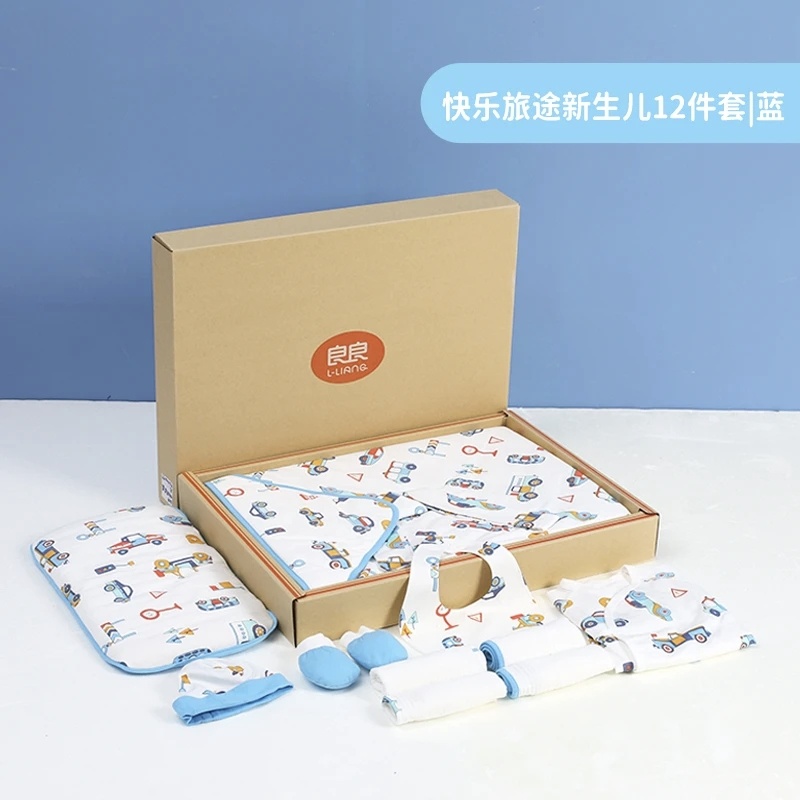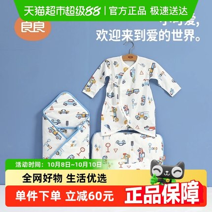 良良婴儿春秋枕头套盒竹棉抱被初生儿纯棉新生儿宝宝包单礼盒