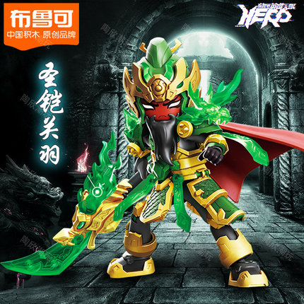 布鲁可英雄无限积木人三国关羽小颗粒拼装机甲布鲁克模型男孩玩具