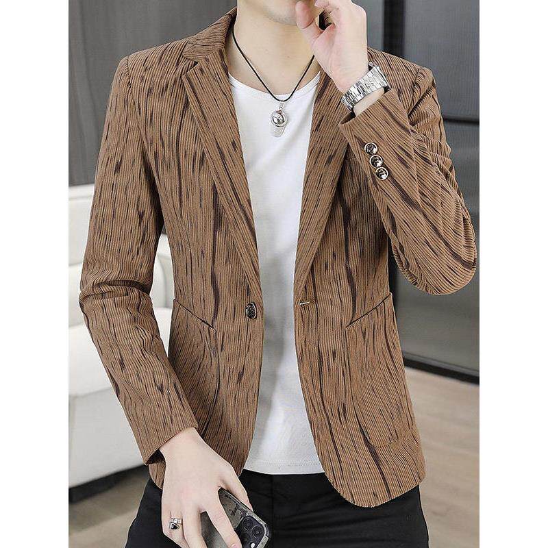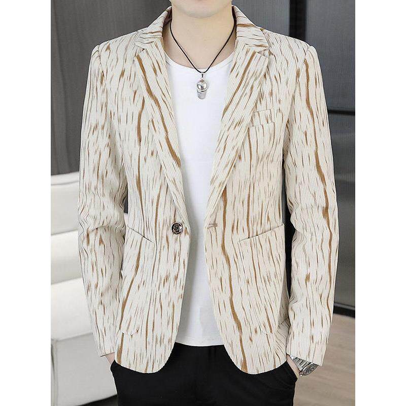 皮尔卡丹男士2026年春秋季新款潮流条纹休闲百搭款小西装单西外套