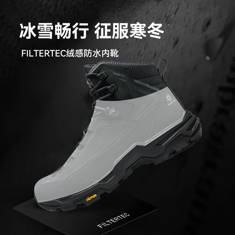 凯乐石加绒徒步登山鞋男冬季保暖防水V底冰面防滑户外雪地靴女