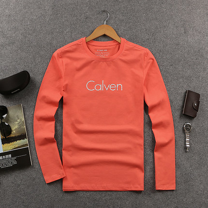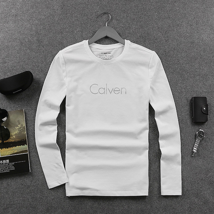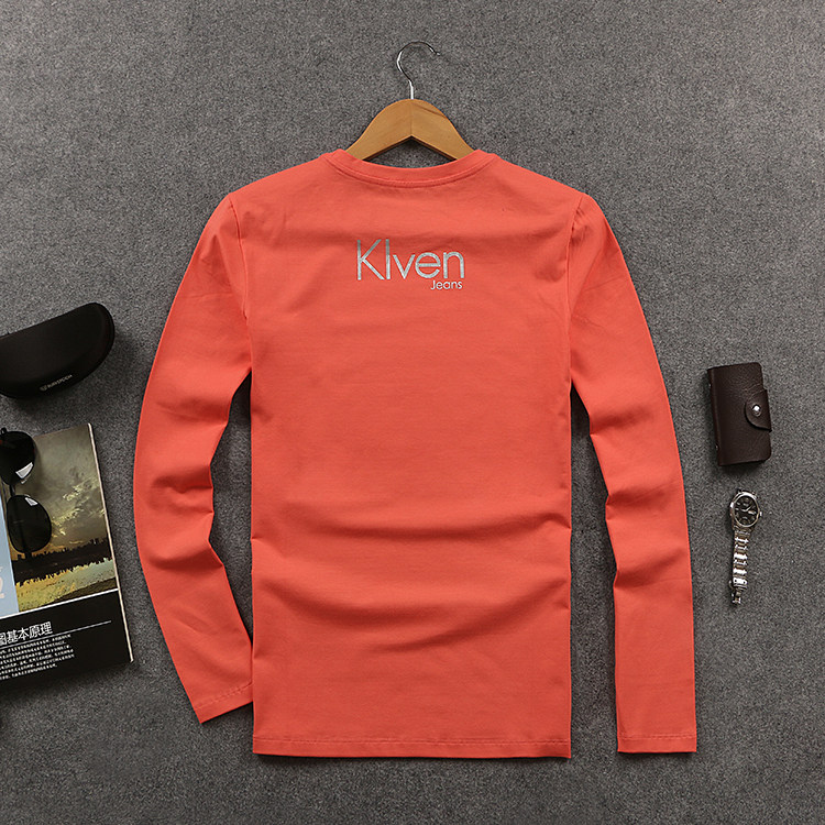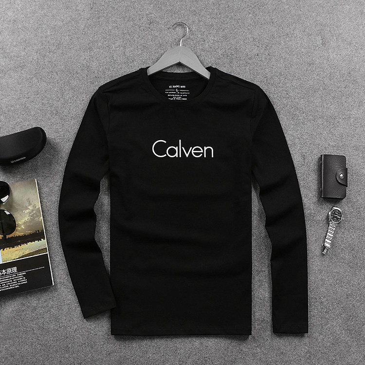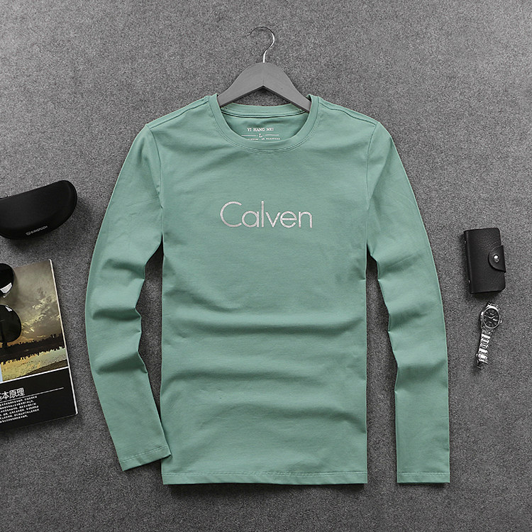2022新款潮牌秋装简约百搭长袖t恤 欧洲站男装休闲纯棉弹力体恤