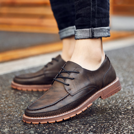 休闲皮鞋男韩版软面皮鞋子秋季潮流青年英伦小皮鞋男士系带豆豆鞋