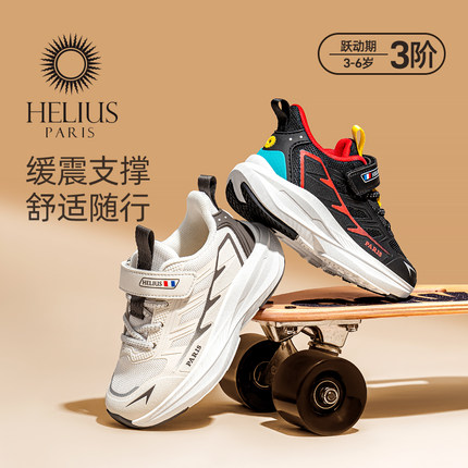 赫利俄斯黑色幼儿园男童女童运动鞋2025秋季新款网鞋儿童机能鞋