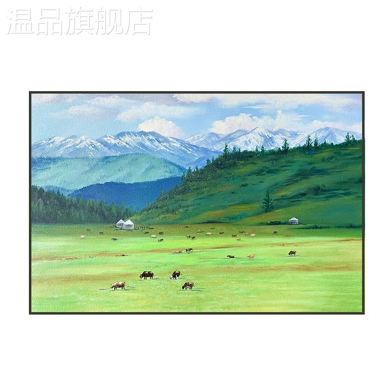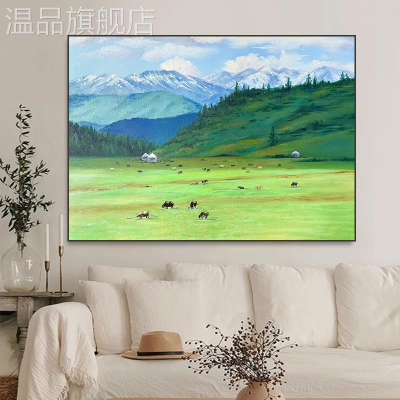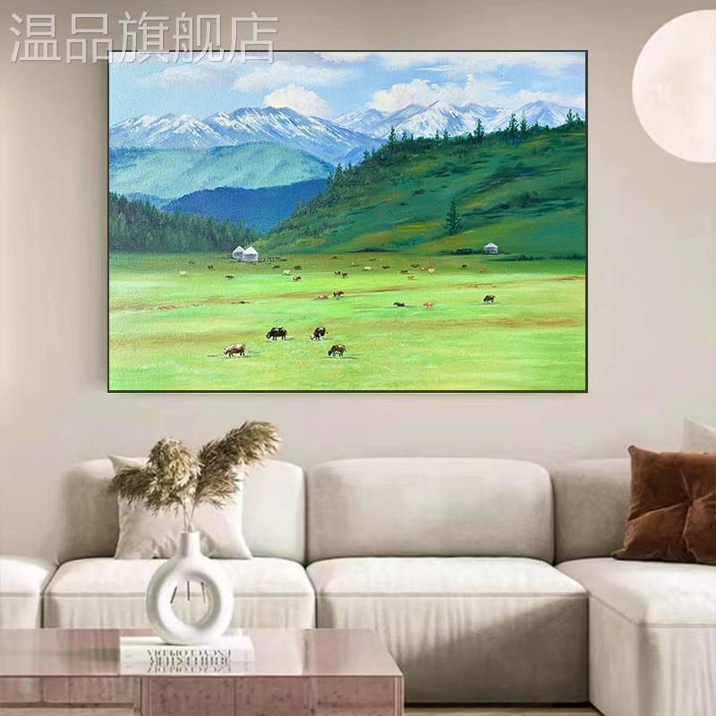我的阿勒泰现代简约客厅沙发背景墙装饰画风景油画感餐厅玄关挂画