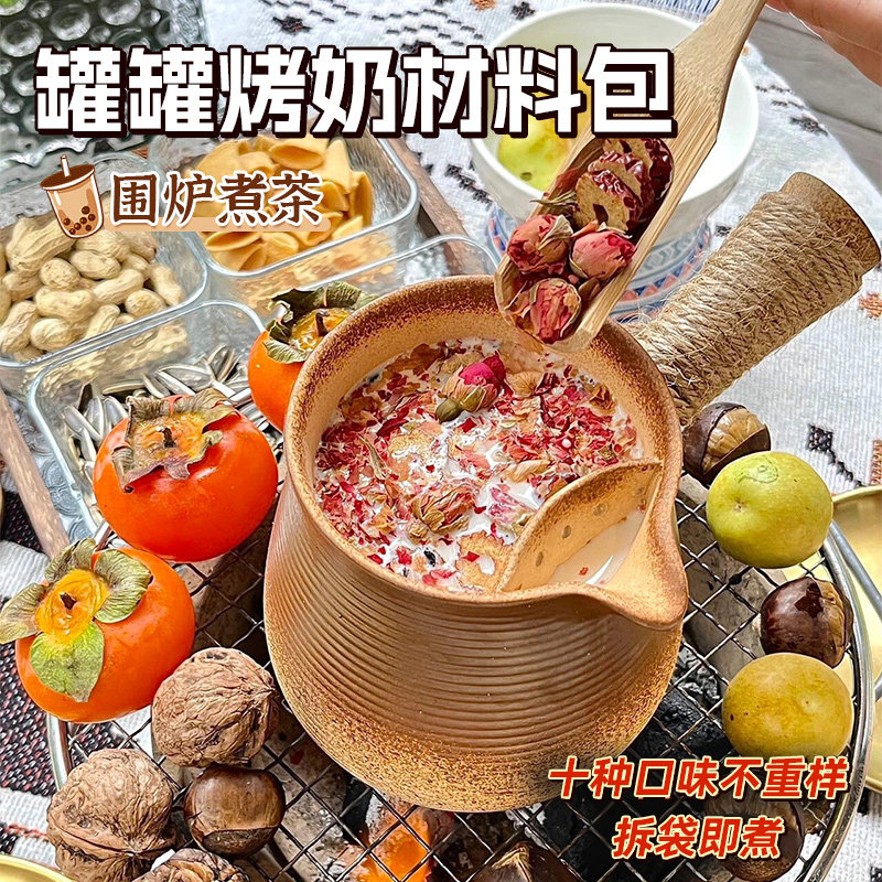 沁晚香云南罐罐烤奶茶材料包围炉煮茶茉莉桂花玫瑰香芋烤奶秋冬喝