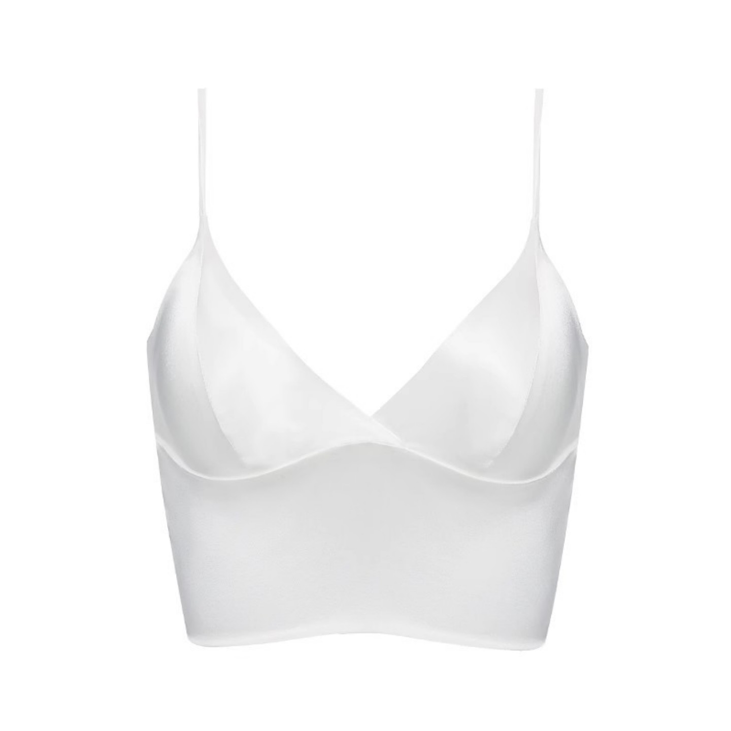 silk 桑蚕丝轻奢背心性感内衣女法式吊带胸垫真丝三角杯光面文胸