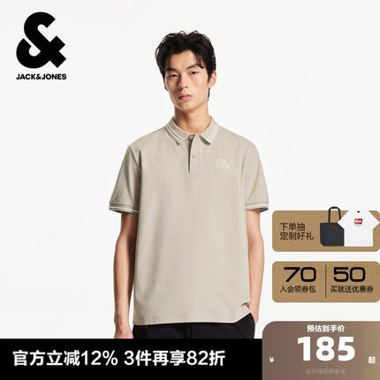 杰克琼斯男装夏季新款纹理感面料字母刺绣撞色短袖男士POLO衫男款