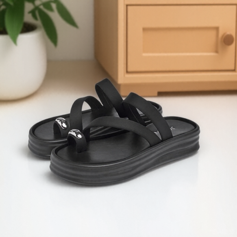 卓诗尼2025新款女凉拖鞋春款女鞋外穿人字拖厚底时尚春夏款黑色